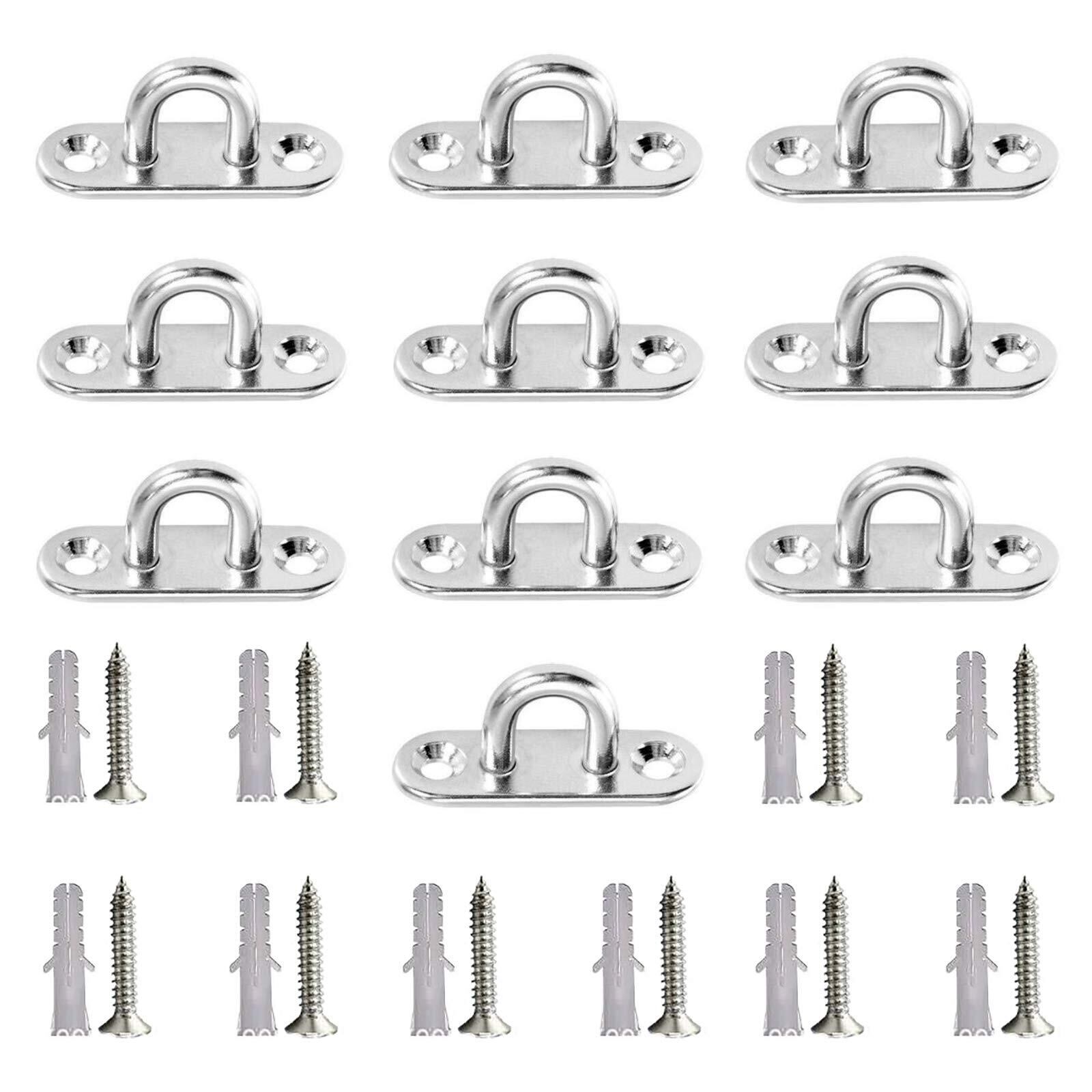 長方形パッドアイ 10個入り ネジ20個付き アイプレート ステンレスループ 304ステンレス鋼製 M5 天井フック U型 金具 固定 取り付け