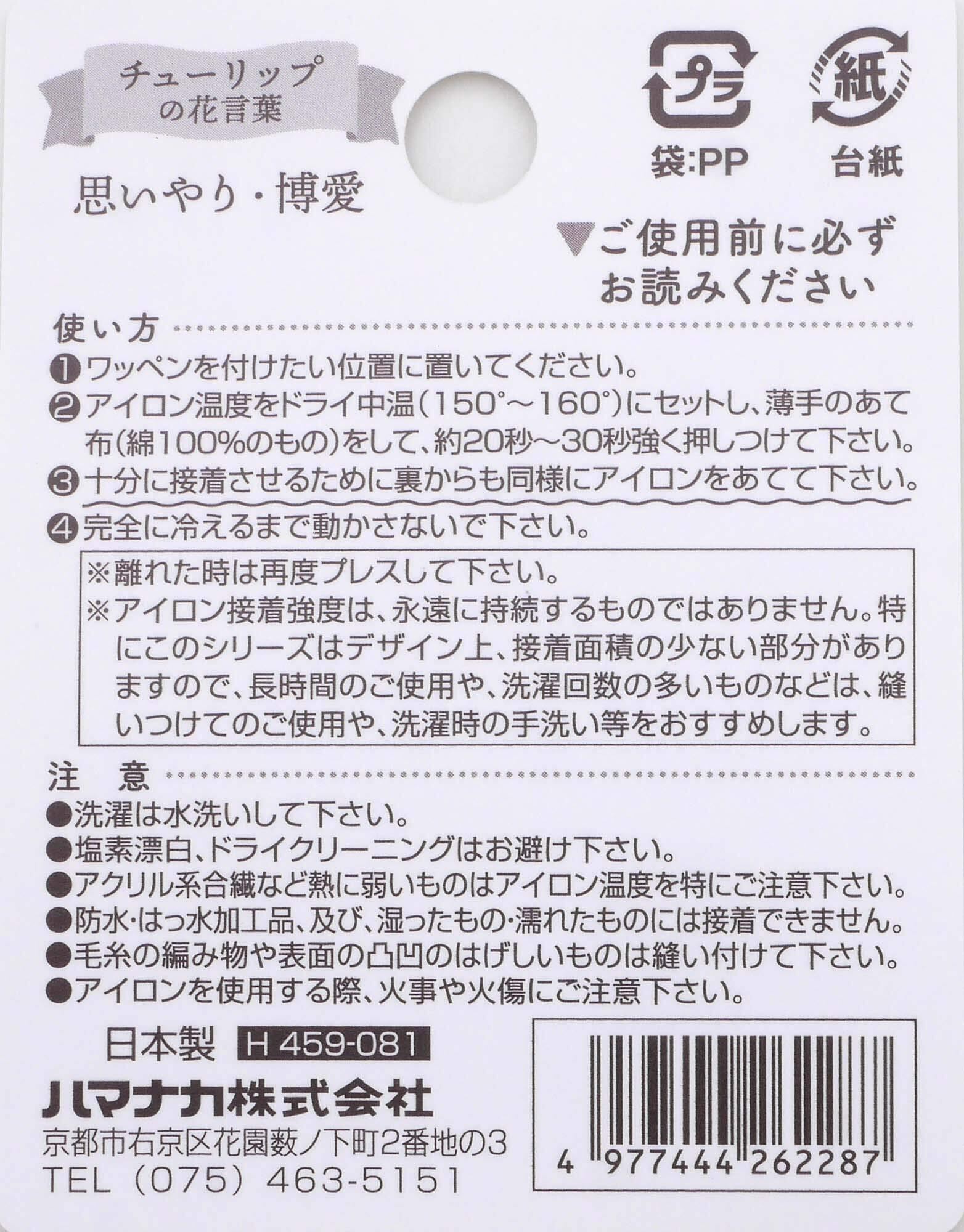 ハマナカ ワッペン ナチュラルブーケ チューリップ H459-081 ピンク
