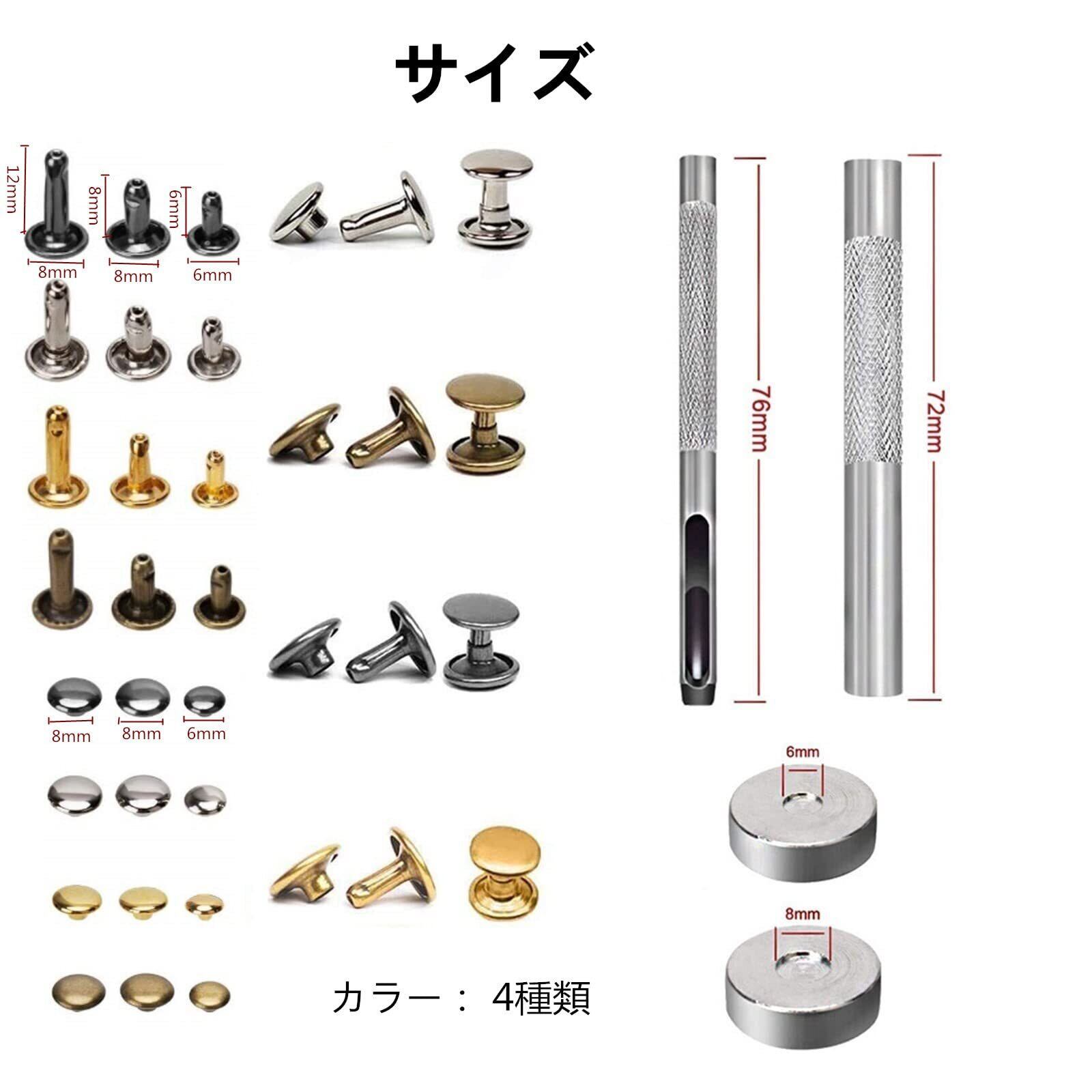 【使いやすい】:このカシメ金具は手芸、修理用スタッズ セットです。手芸用スタッズセットで、6/8/12mmのスタッズを取り付けるのに便利な工具とスタッズのセットです。使用方法は大簡単で、初心者からプローまで革製品などのハンドメイド作品簡単に飾るできます。