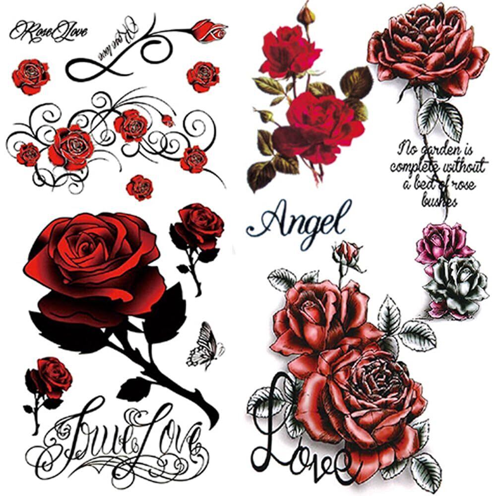 【セット内容】タトゥーシール 薔薇 赤 黒 8枚セット、大柄2種類各3枚、小柄2枚。