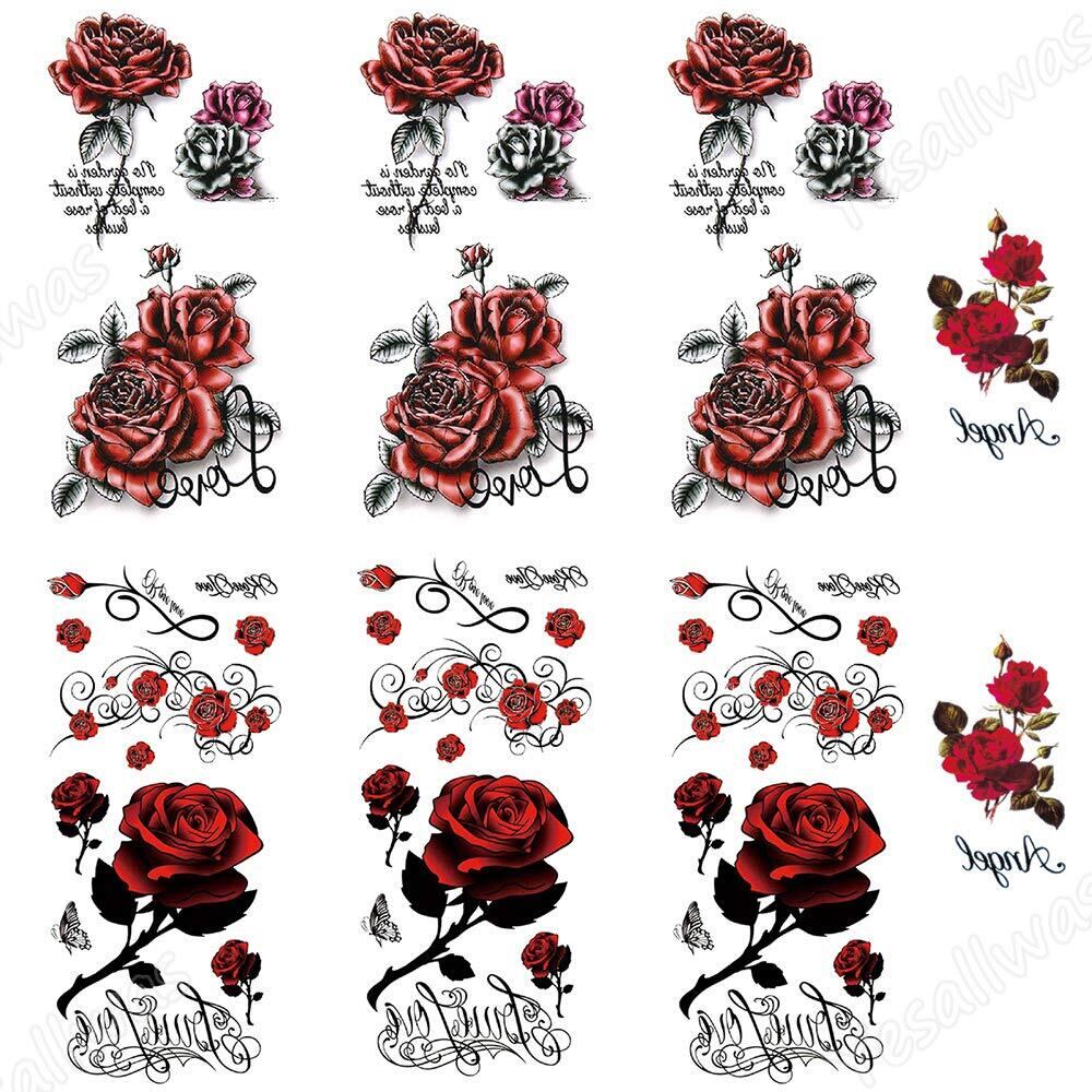 【特価商品】Yesallwas タトゥーシール トライバル 薔薇 赤 黒 8枚セット ロース Rose 長持ち タトゥーステッカー ボディーシール 刺青シール 防水 rose tattoos 9X19cm (F.8枚セット) | allstore3