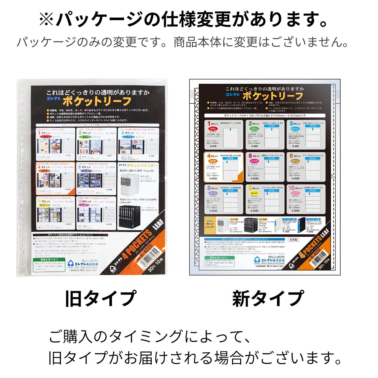 コレクト リフィル 透明 ポケットリーフ A4 4ポケット 30穴2列2段 10枚 S-4220 プラスチック