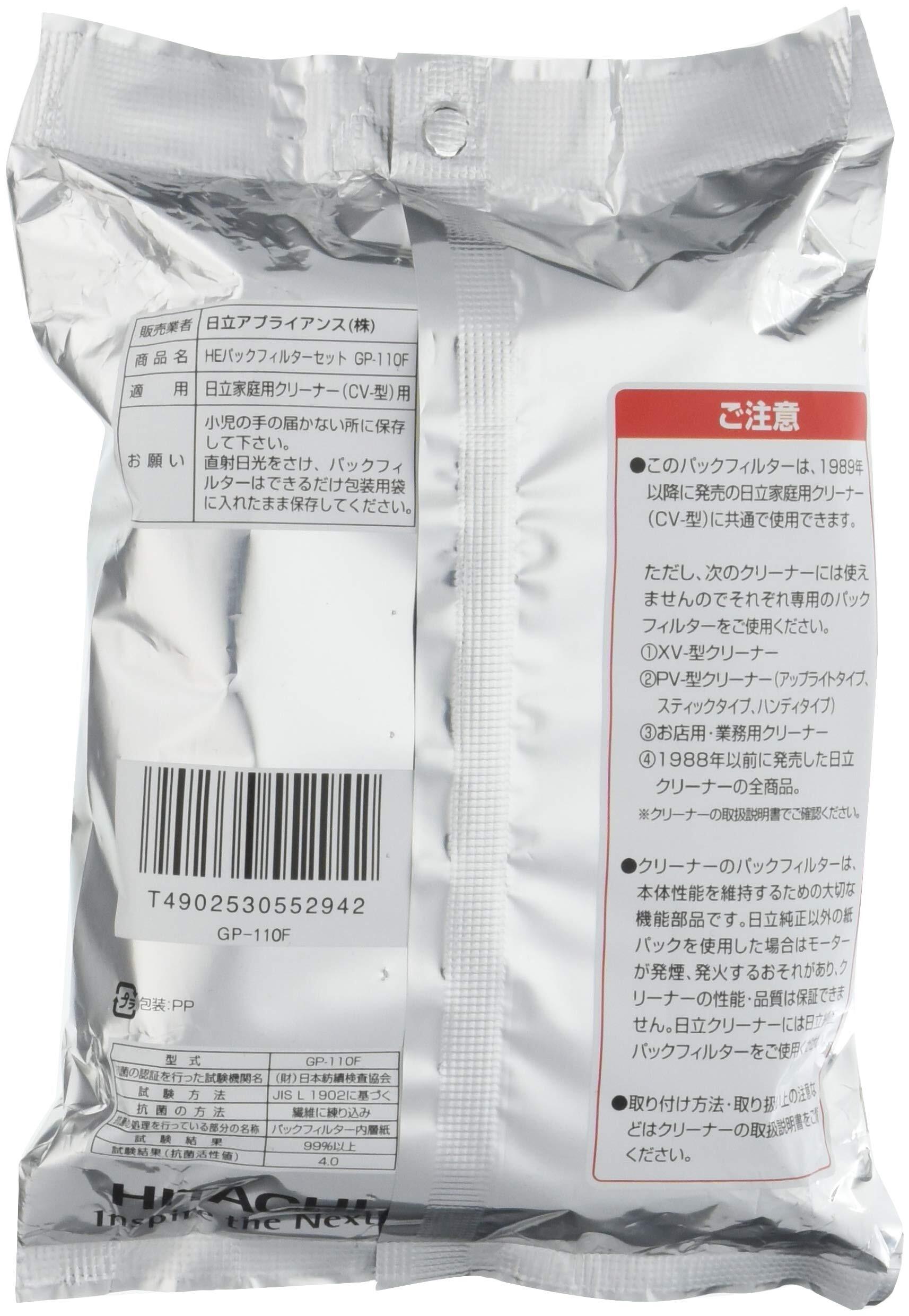 日立 純正クリーナー紙パック 抗菌防臭3種・3層HEパックフィルター(5枚入り) GP-110F