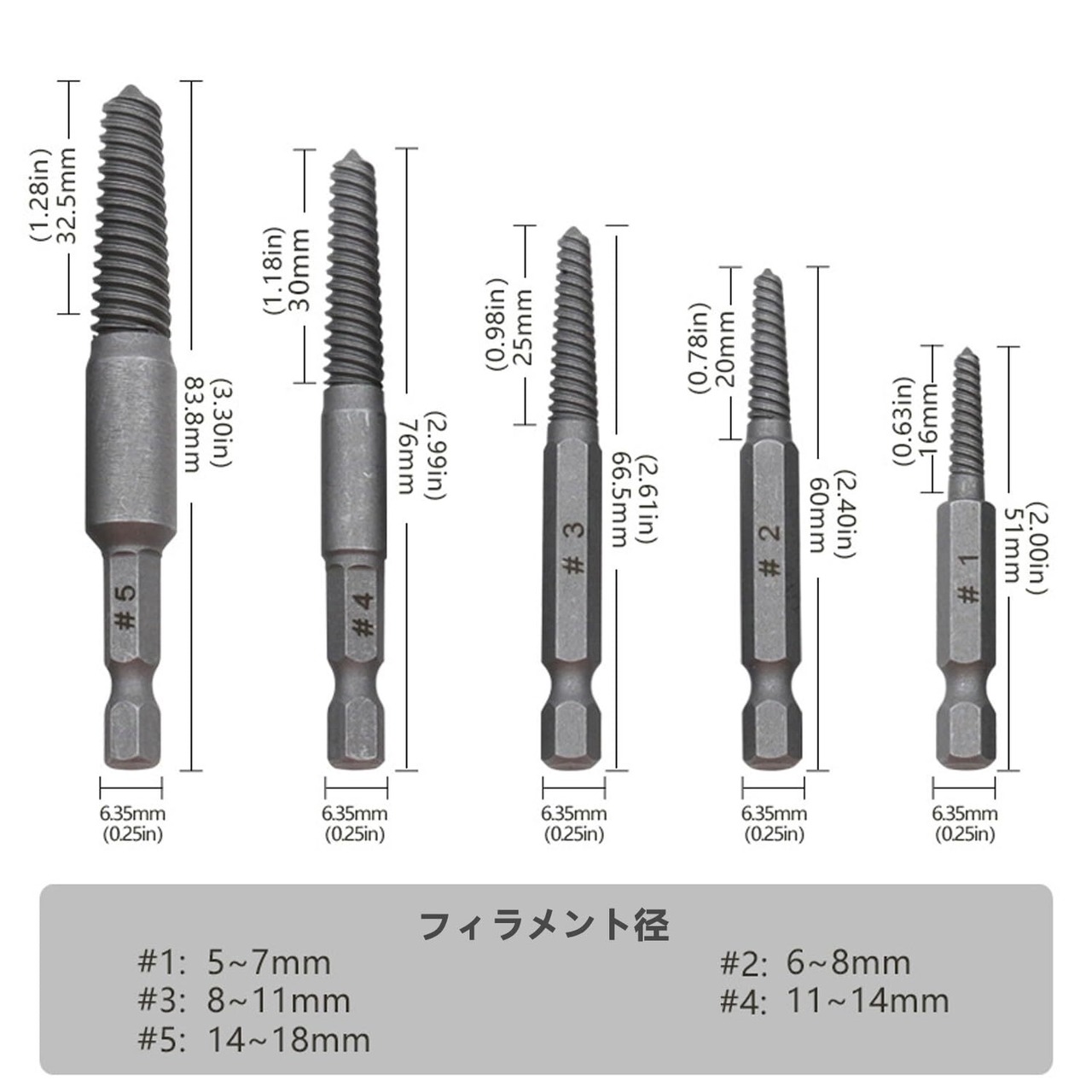 5本 ネジ山補修キット エキストラクター ネジザウルス 逆タップ 六角軸ネジ取りビット なめたネジはずしビット ネジ山 潰れた