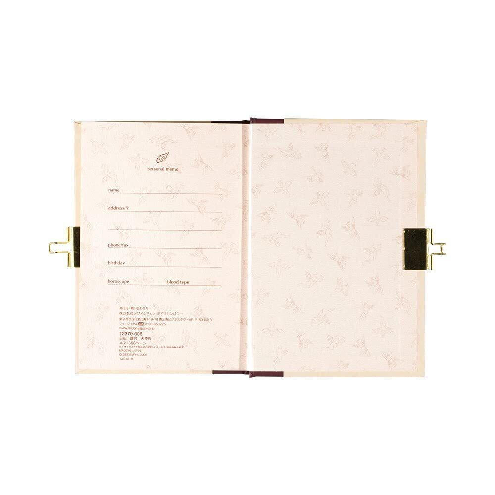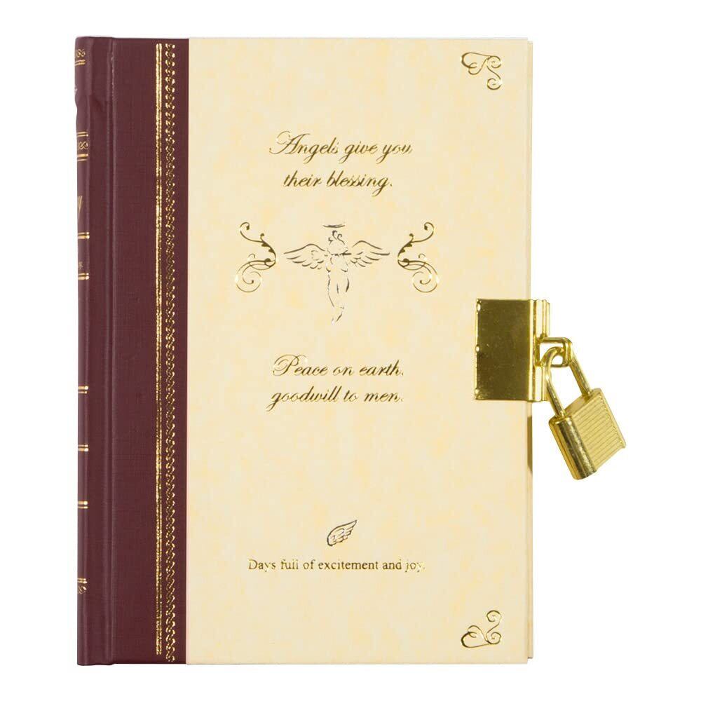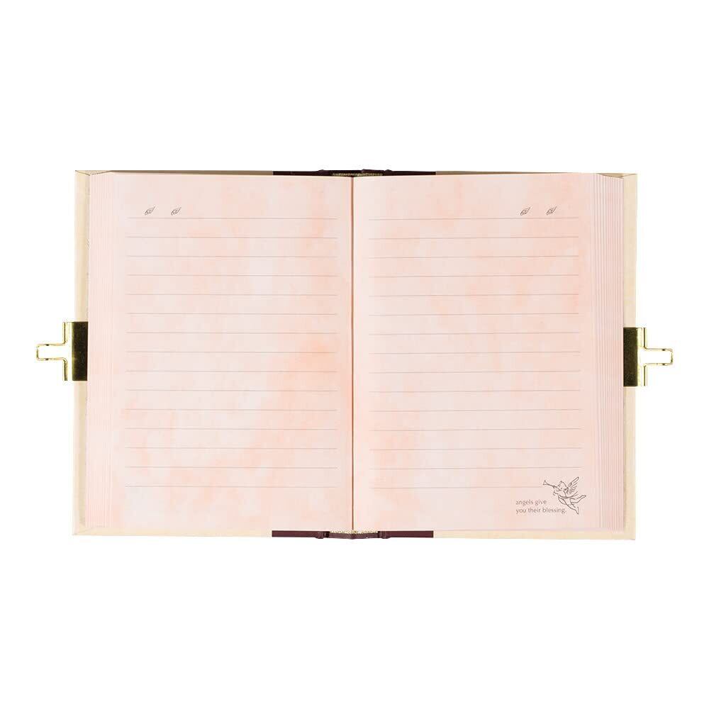 表紙の箔押しが上品な印象で、プレゼントにもおすすめです。商品名:ミドリ 日記 鍵付 天使柄 12370006