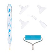 【商品仕様】ダイヤモンドペン本体、6種類の交換可能なペン先(1枚貼り、3枚貼り、6枚貼り、9枚貼り、斜頭、修正)を含むローラーセット付きダイヤモンドアートペン。