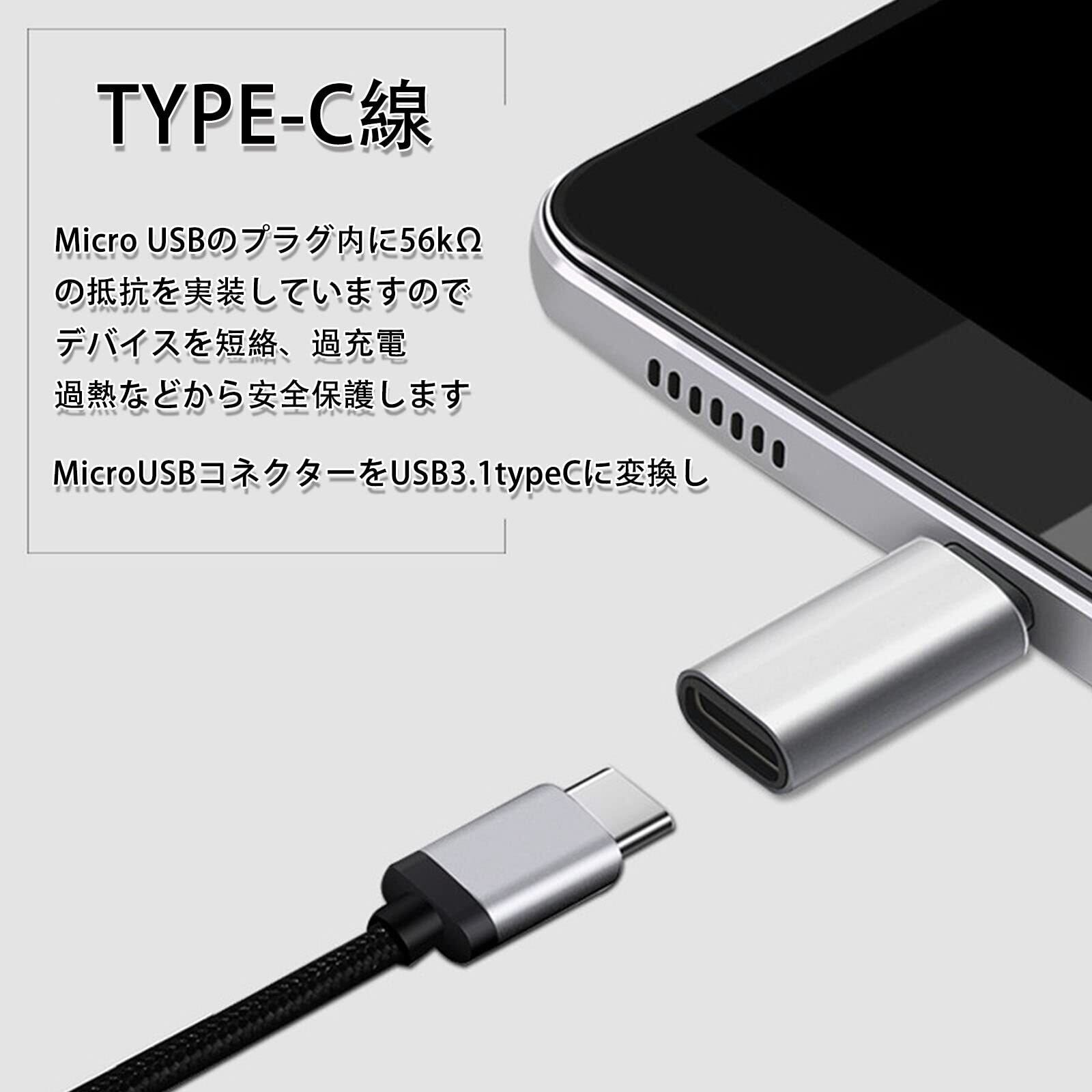 【セキュリティ保護】Micro USBのプラグ内に56kΩの抵抗を実装していますので、デバイスを短絡、過充電、過熱などから安全保護します。