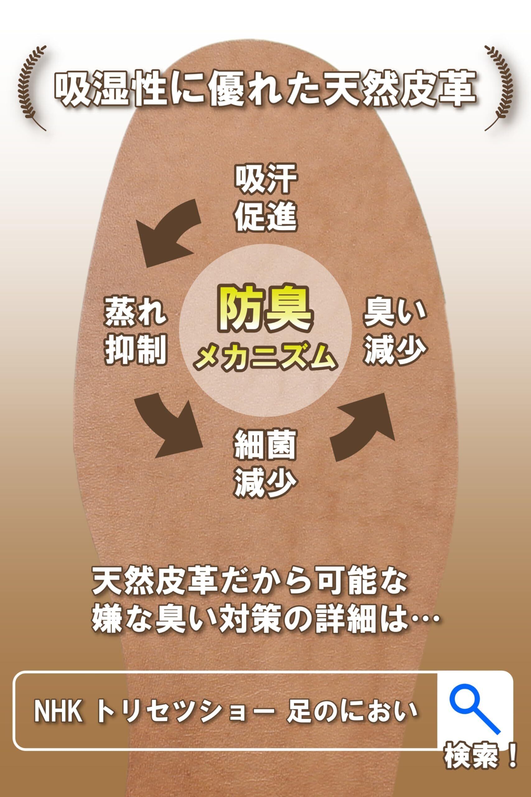 「栃木レザー」を使用した吸湿性に優れたインソールです。