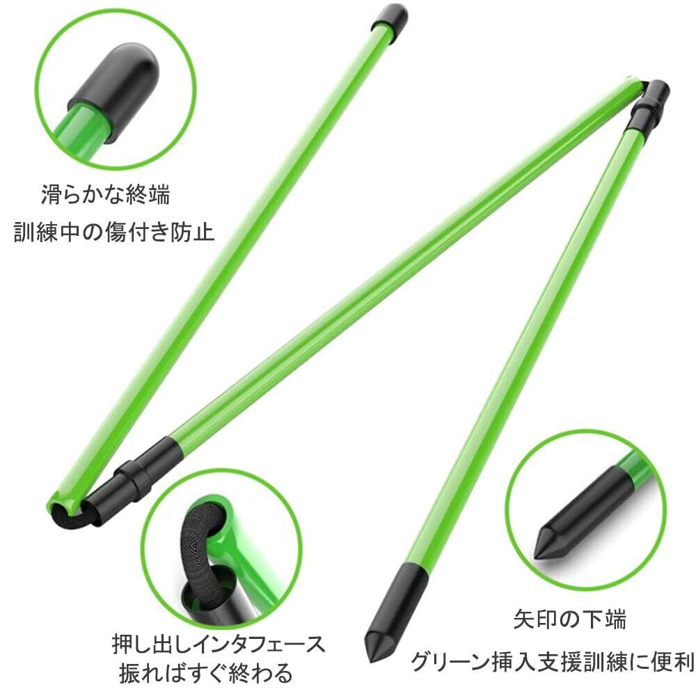 【 いつでもどこでも 練習 できる 】 アライメント スティック の先端にとんがりキャップを採用し 尖っているため地面に刺して使うことができ スイング や ボディワーク など様々な 練習 ができるので アイディア次第で練習の幅が広がります。 練習場だけでなく部屋やオフィスでボールのアライメント、クラブのアライメント、最適なインパクトを達成するためのアドレス、スイングプレーンを確認出来ます。