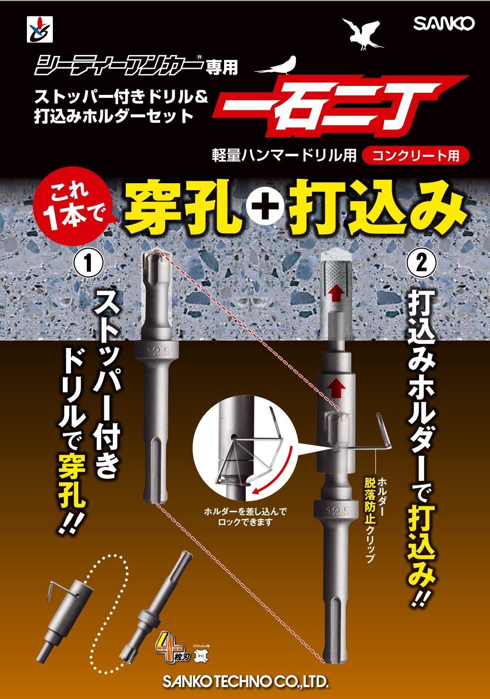 シティーアンカー専用 ストッパー付きドリル&打ち込みホルダーセット