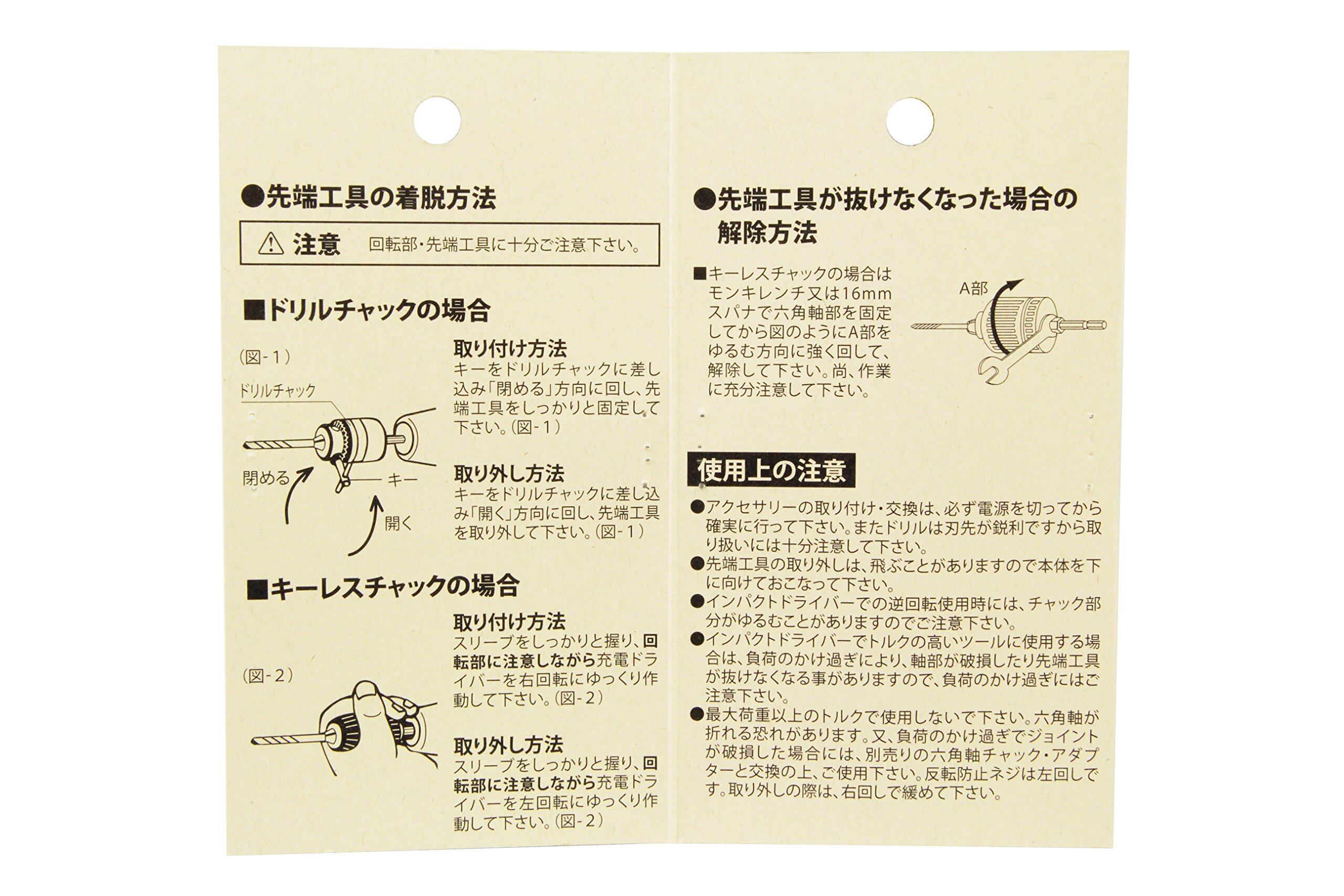 用途:充電ドリルドライバー・インパクトドライバーに装着して、丸軸先端パーツを使っての作業