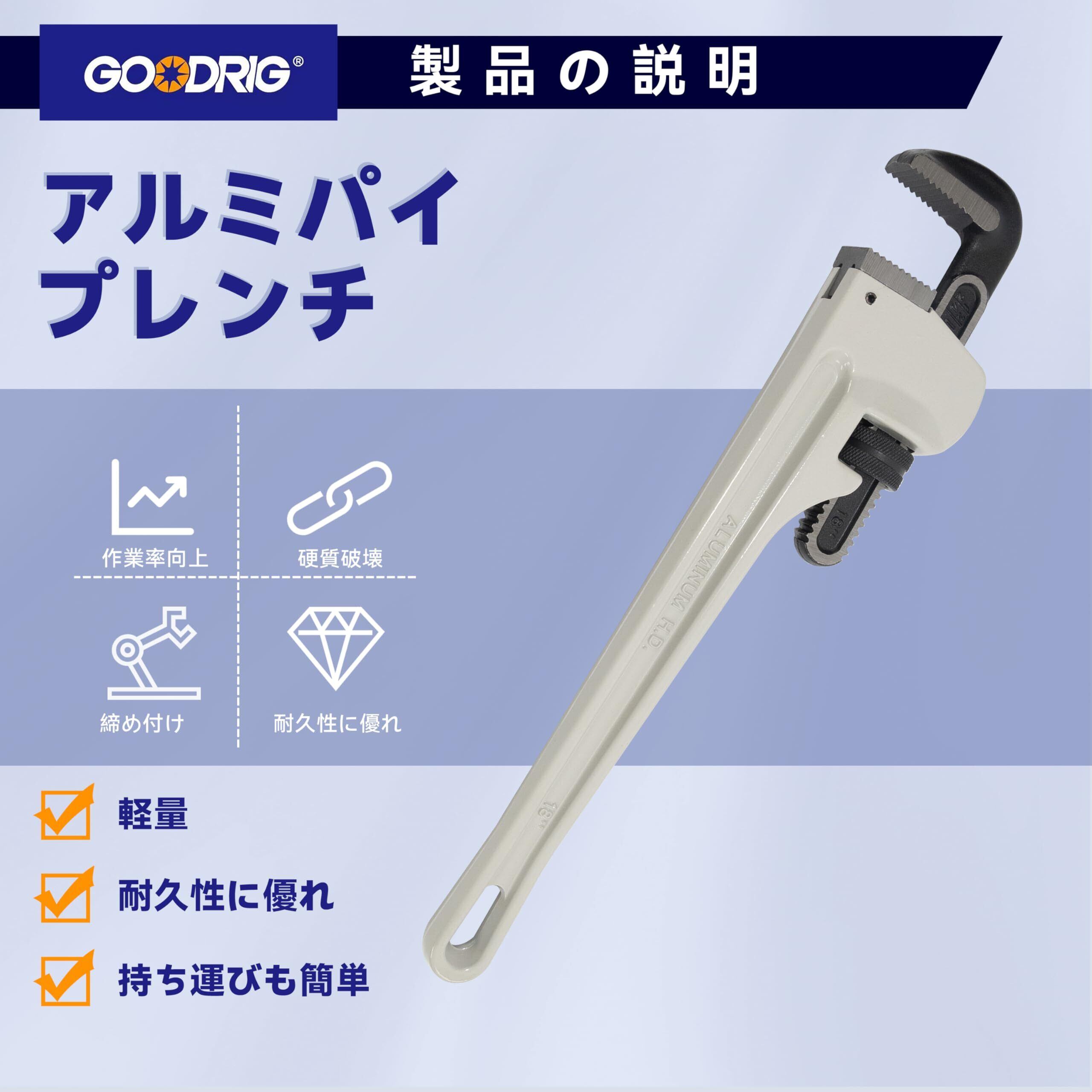 【材質】アルミ製、耐久性に優れ、軽量で持ち運びも簡単です。 【鋸歯状のジョー】パイプレンチには鋸歯状のジョーと調整可能なナットがあり、セルフクリーニング・スレッドをカバーし、フック・プライヤーとスプリング・コンポーネントを置き換えることができます。でも、このレンチをハンマーとして使用することはお勧めしません。 【作業率向上】握りやすいハンドルで、全体的な調整が迅速になり、作業率がアップしています。 【適用】パイプレンチは、さまざまな形のねじ込み管を締めたり、緩めたりするのに適しており、住宅の配管作業やメンテナンスに使用しています。