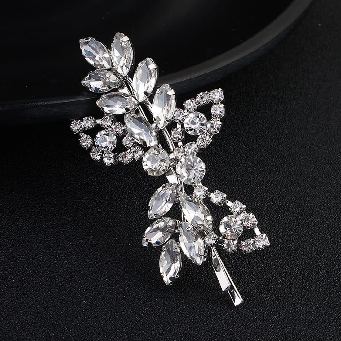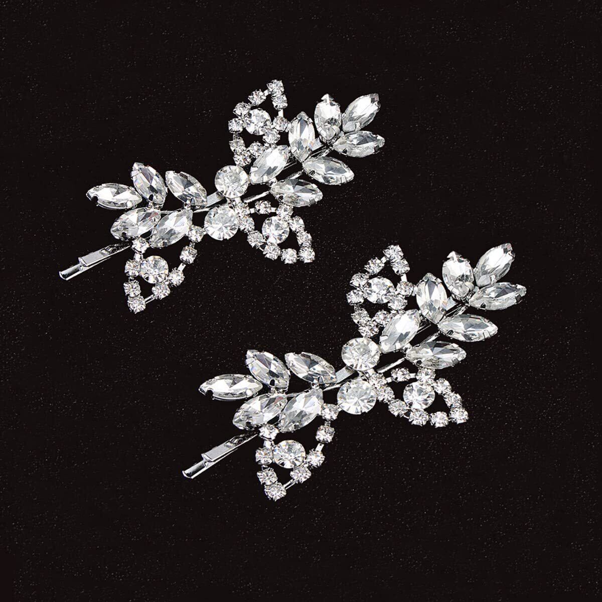 【2022最新】Uongeodラインストーンブライダルヘアクリップ(2PCS)葉の結婚式のヘアピン花嫁パールクリスタルヘアクリップシルバーラインストーンのバレッタエレガントなブライダルヘアアクセサリー