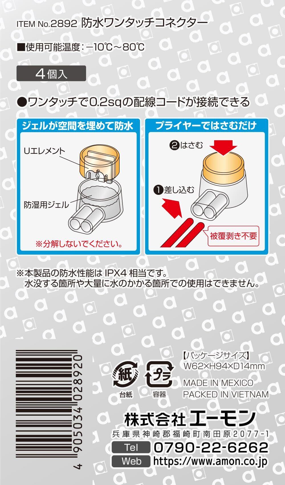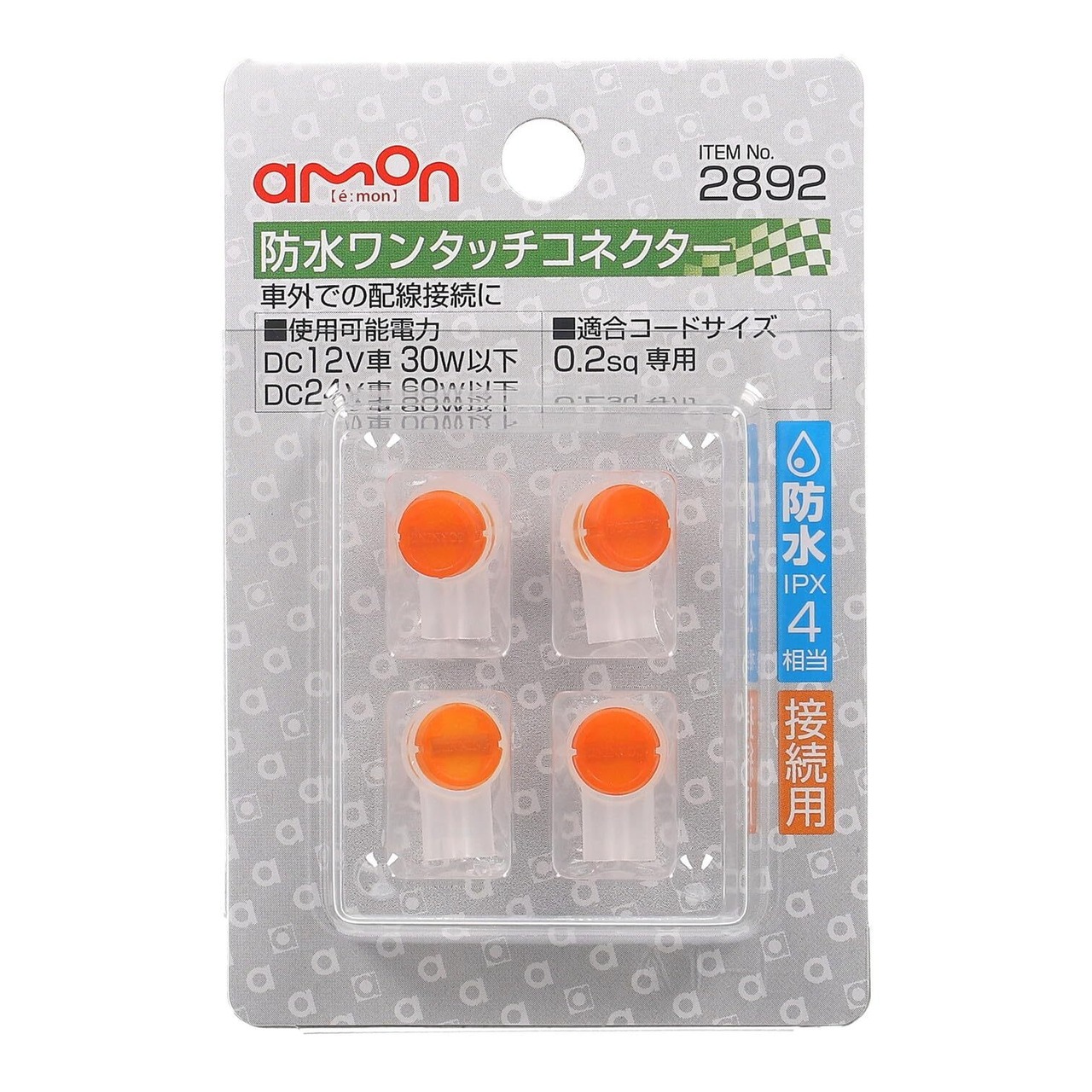 エーモン(amon) 防水ワンタッチコネクター(接続用) DC12V30W以下/DC24V60W以下 4個入 2892