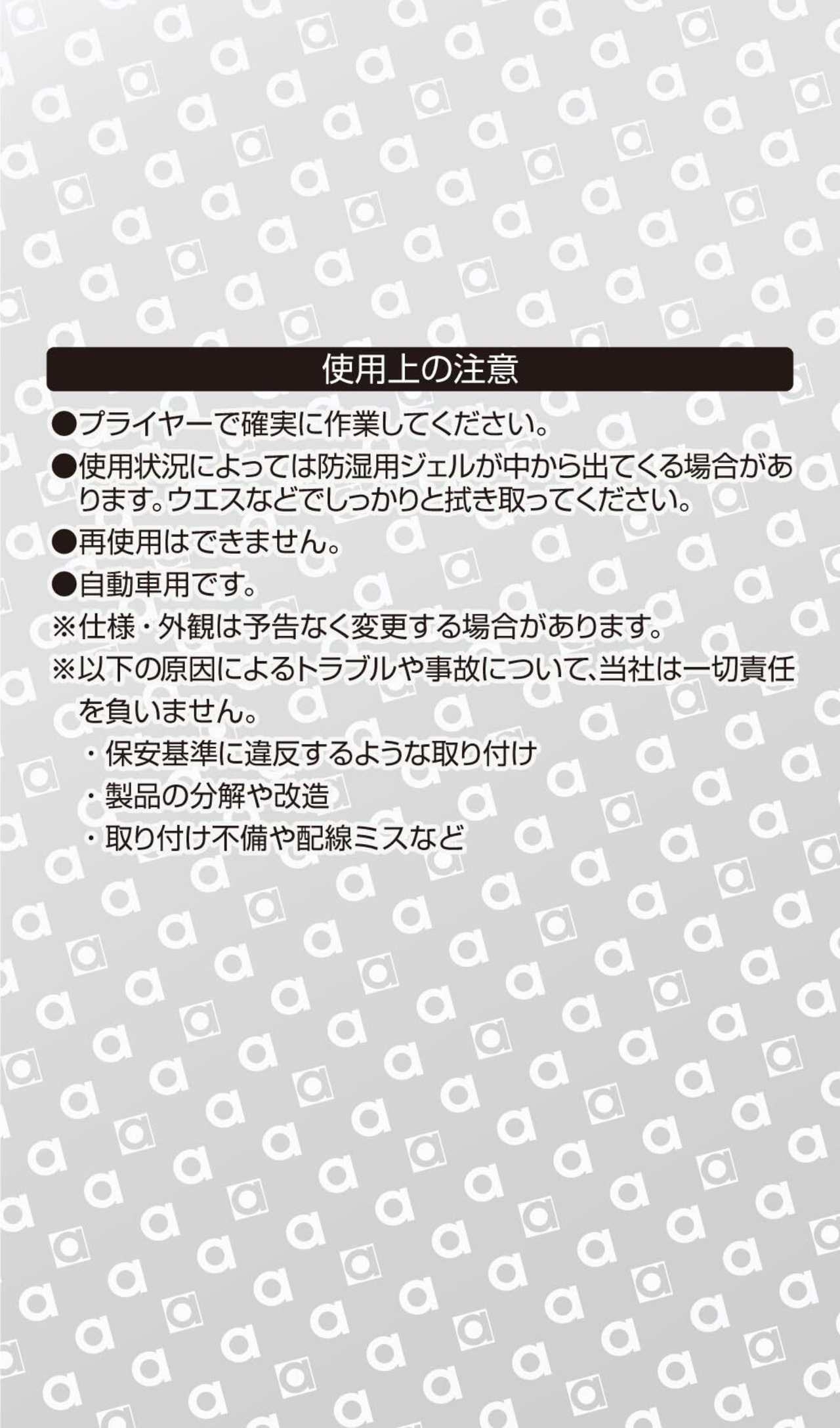 使用可能電力:DC12V車・30W以下/DC24V車・60W以下