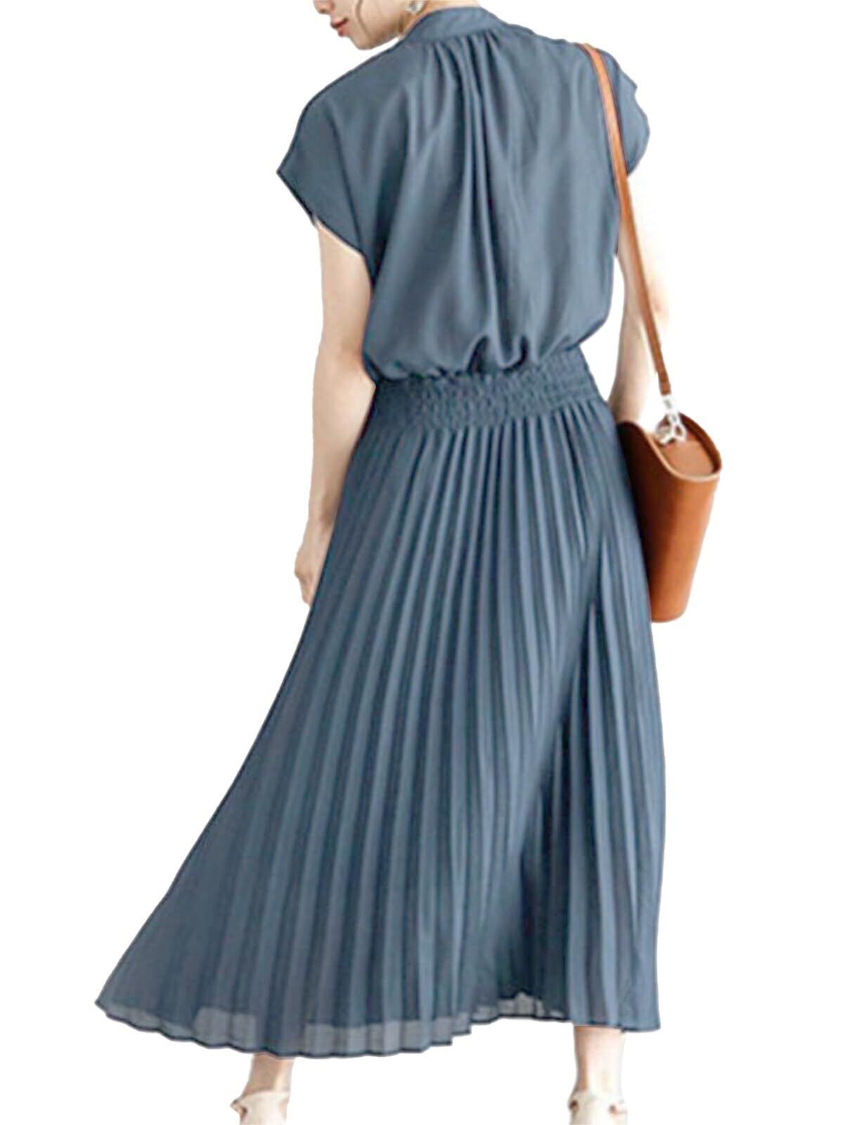 【きれいなシルエット】Aラインのワンピースで着痩せ、脚長効果も。ロングの適宜な長さは動きやすく、足もより長く見せ、着心地のよさとデザイン性が共存しております。エレガントなデザインのカジュアルワンピースです。