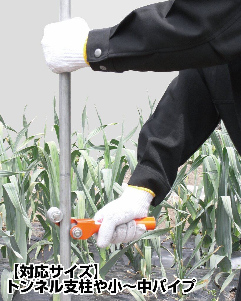 栽培用支柱やハウスのパイプなどを、体重を利用して楽に地面に立てることができます。