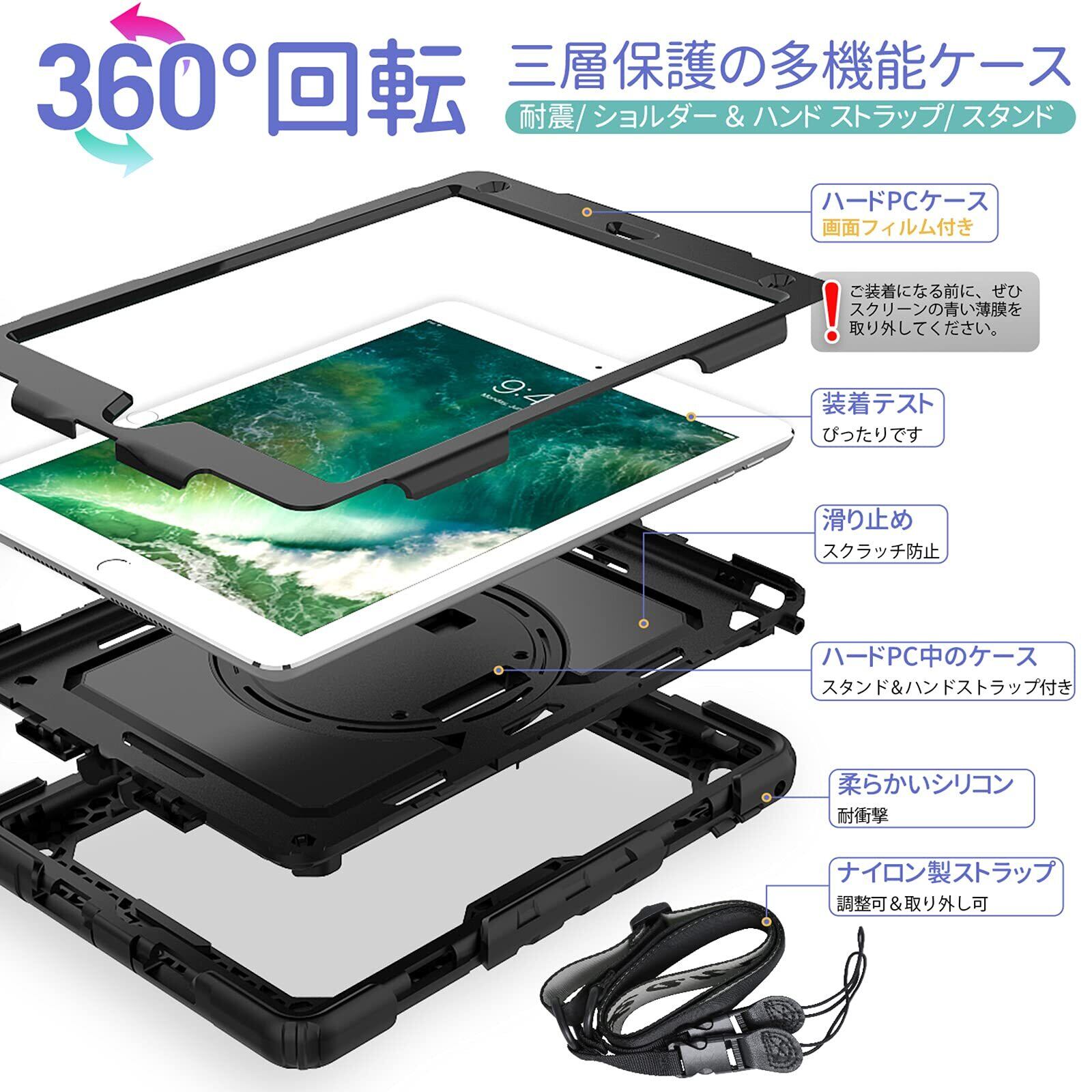 【特価商品】Timecity iPad 第6世代/ 第5世代/ Air2/ Pro 9.7 インチ ケース 耐衝撃 保護フィルム 360回転スタンド ショルダー&ハンドストラップ ペン収納付き 防塵 頑丈 仕事用 現場 工事 子供 2018/2017 iPad 9.7インチ ケース (ブラック)(適格請求書発行可能) | allstore3