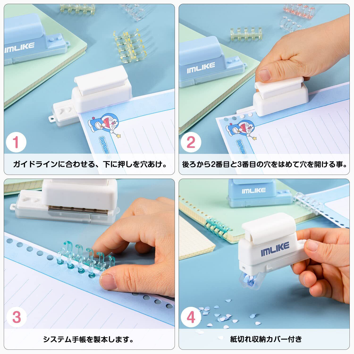 【5穴開けパンチ自由の位置二穴あけ】一回に4枚紙に対応する、一回5つ穴開け、自由の位置に穴開けすること。サイズ:穴間隔:9.5mm、穴径:5.5 mm