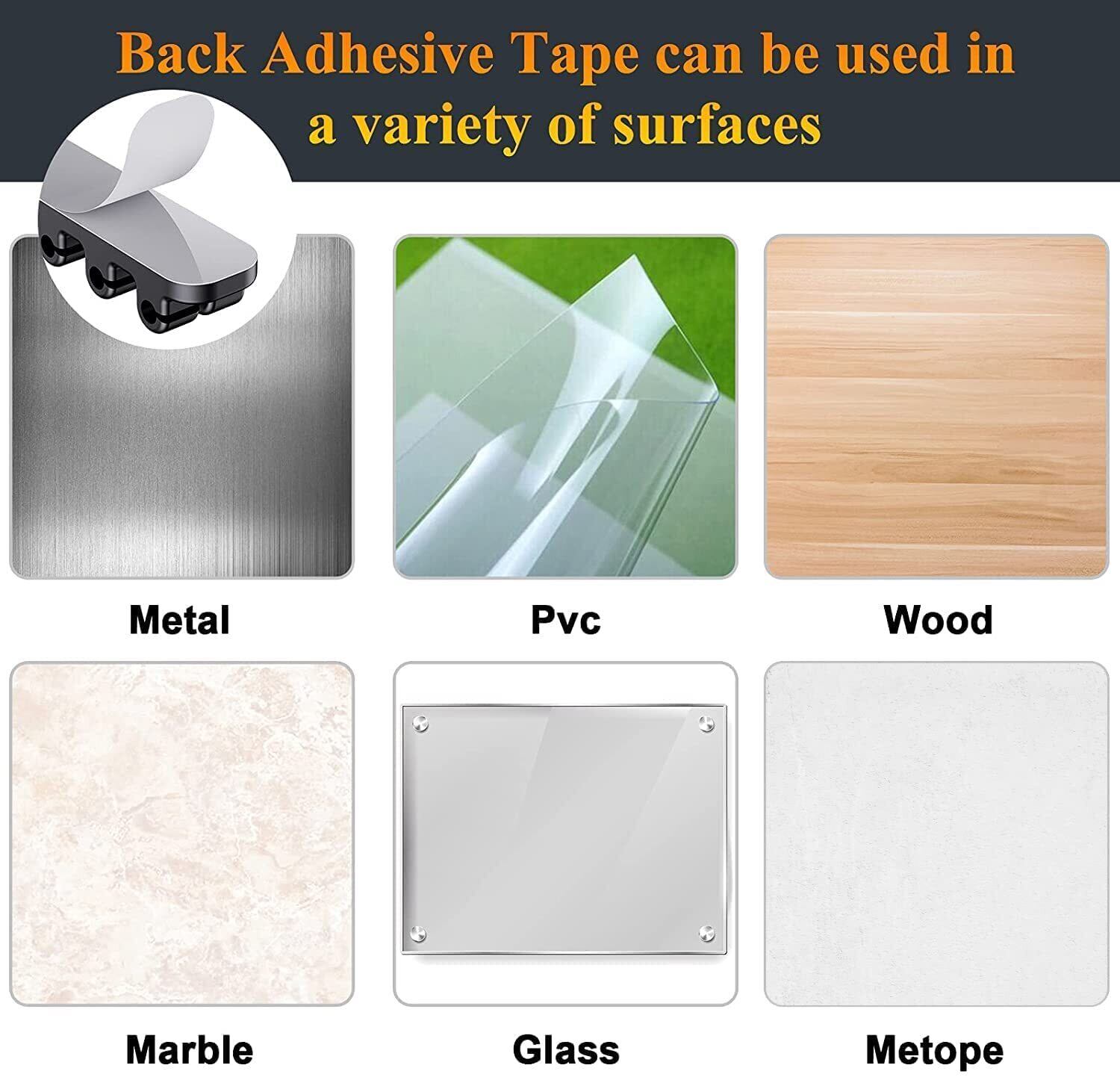 【強力な両面テープ】強度が高い両面テーブルを使用してホルダーを凹凸のない平らな面にしっかり貼り付けられます。例えば木製や金属製、ガラス製や大理石などの材質の表面に利用できます。そしてデスクや床のような場所にケーブルを留めておけるほか、壁や家具の側面、車内などにケーブルをすっきり配線できます。