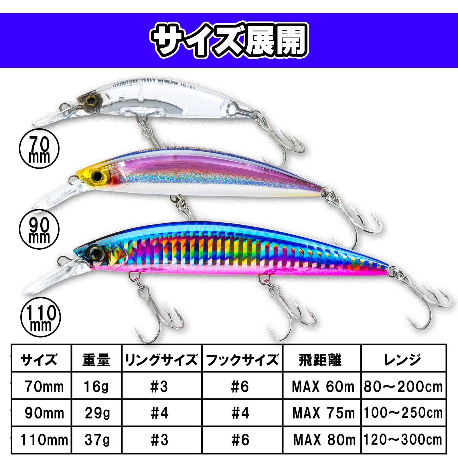 【2022最新】デュエル(DUEL) ハードコア ヘビーミノー (S) シンキングミノー(青物・サゴシ・ヒラメ・マゴチ・シーバス) 16〜37g 70〜110mm