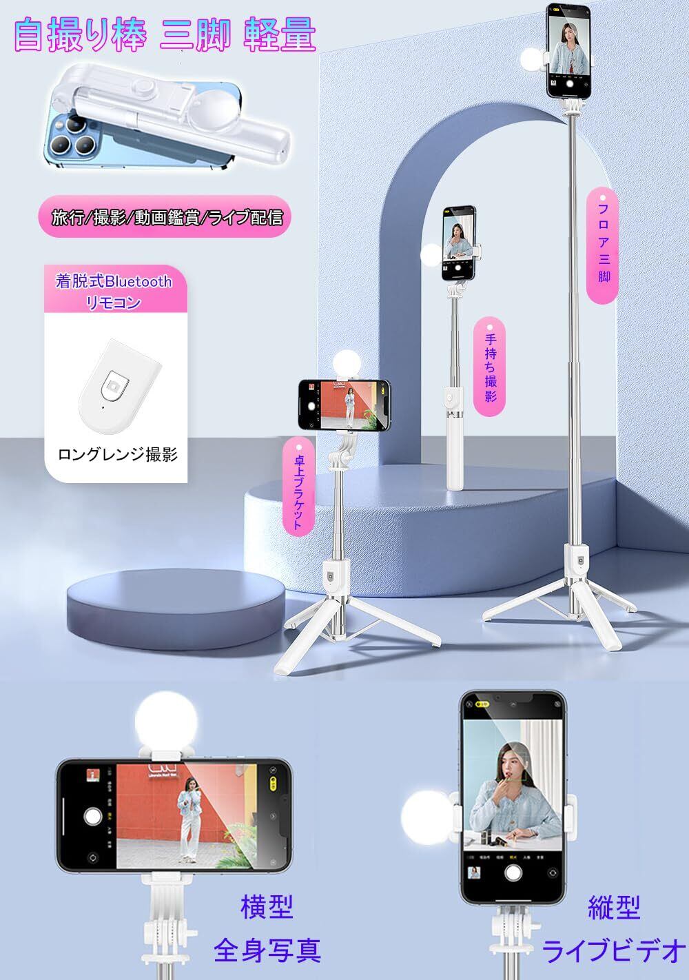 【2024新款・三脚/一脚兼用】三脚と一脚を自由変換、自撮りも大人数の集合写真も撮りやすく、生放送やビデオ通話の時両手を解放でき気楽にお話できます。三脚の先に滑り止めゴムのおかげで、ロッドを伸ばした時にグラつきなく、しっかり地面に固定されるので安定感が抜群です。使わないとき一脚に収まり、収納しやすいです。