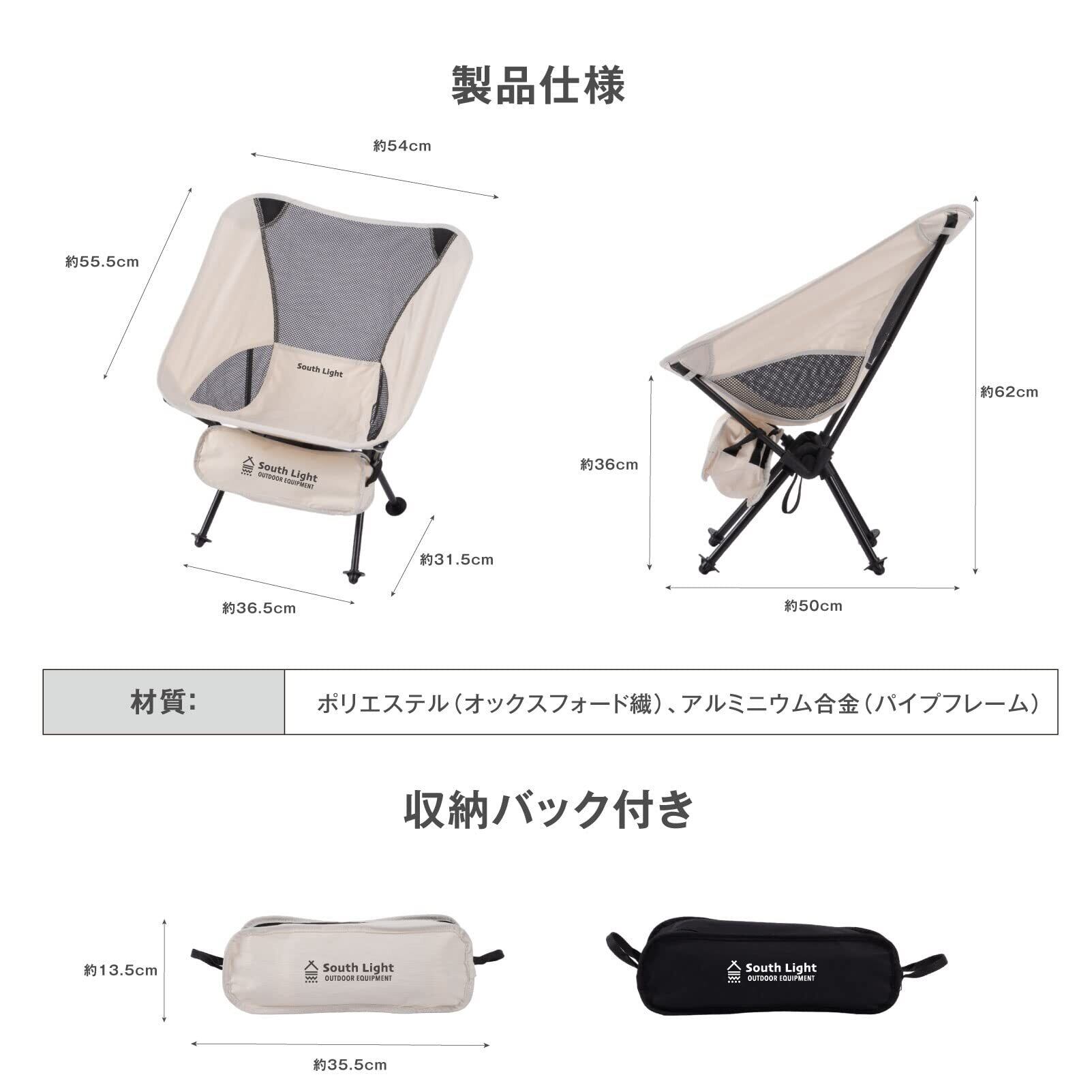 【仕様】製品名:アウトドアチェア 型番:sl-yz65-bk 展開サイズ:(約)W51.5xD50xH62cm、収納サイズ:(約)W35.5xD12xH13.5cm カラー:ブラック 重さ:1.5kg 材質:スチール(フレーム)、ポリエステル(シート、オックスフォード織) 梱包内容:フレームx1、シートx1、収納袋x1