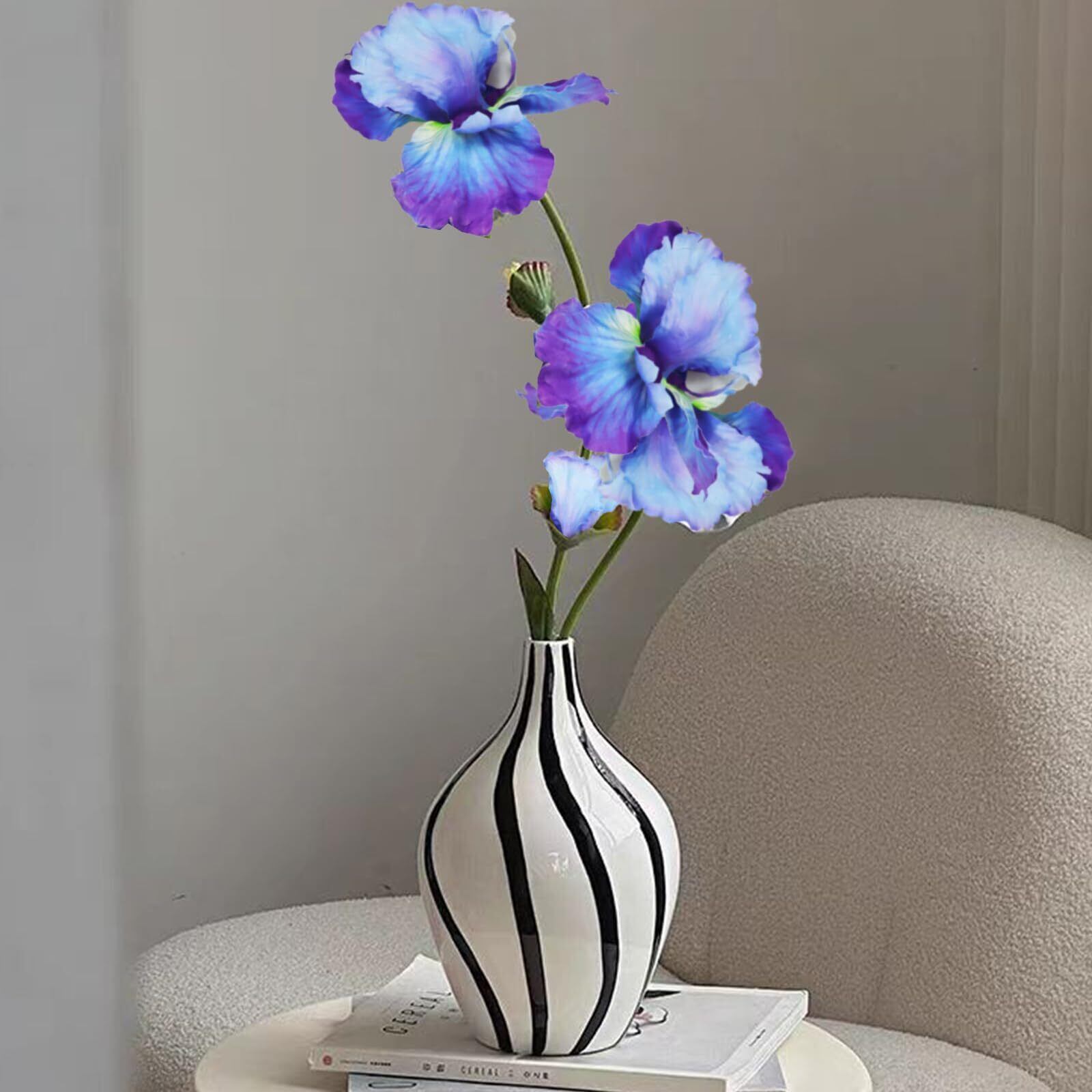 【自然な外観】:あやめの造花はシルク生地と環境に優しいプラスチック素材で作られており、高品質で自然な外観を備えています。花びらは滑らかな手触りで色も鮮やかで、花全体がまるで本物の花のように生き生きとしています。