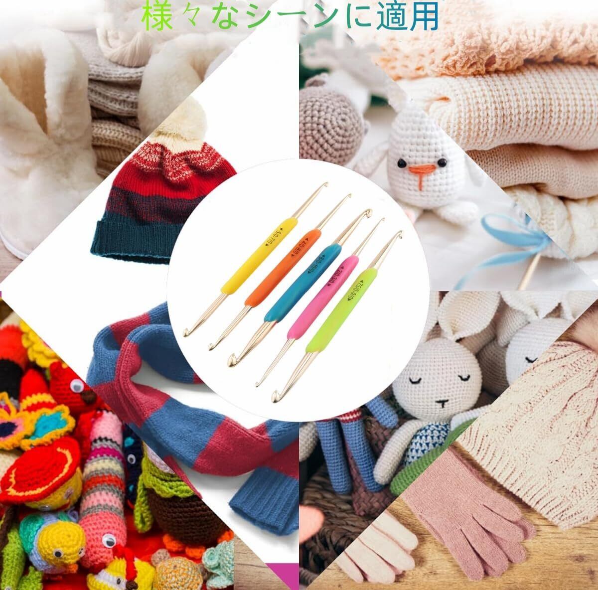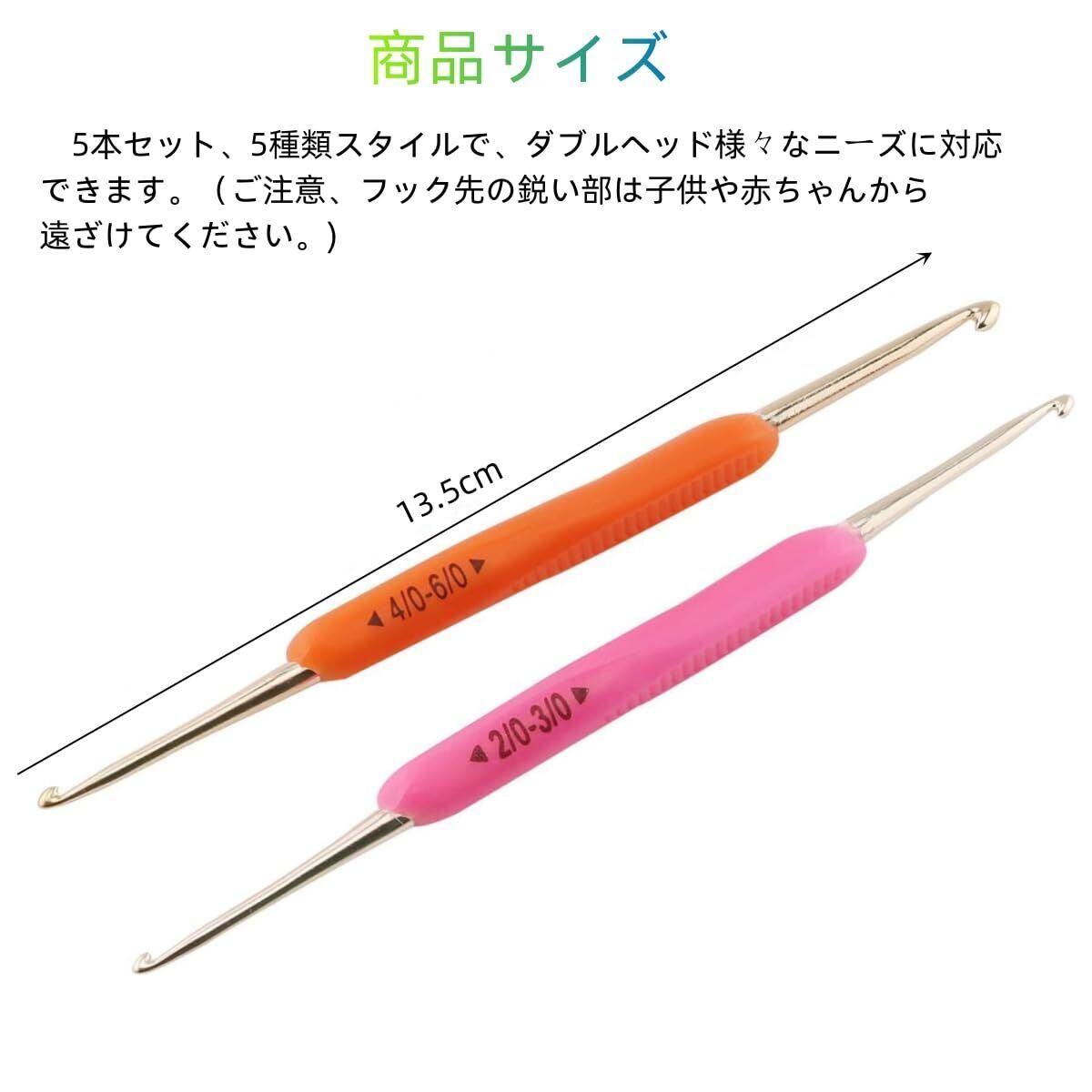 YFFSFDC かぎ針セット 編み針 ダブルフック かぎ針編組毛編みツールかぎ針編みフック ソフトラバー 手芸 便利DIY 実用的 5本セット