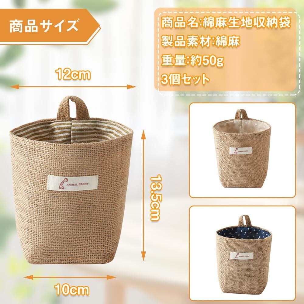 ウォールポケット 麻 壁掛け収納 収納ポケット ベッドサイド 収納 吊り下げフルーツバッグ ハンギングフルーツバッグ 小物整理ラック 壁掛け収納 家庭用品 3個セット