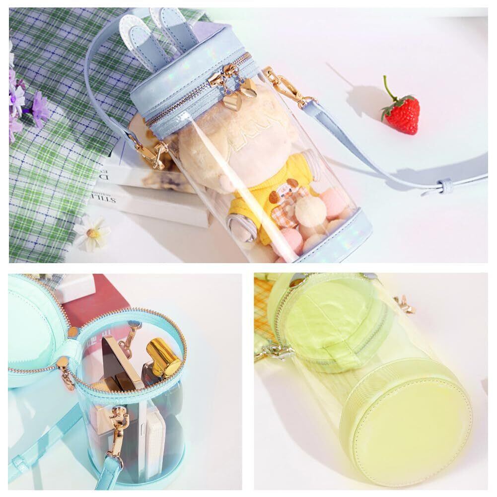 [YUYAKESHI] 痛バ 見せバッグ ショルダーバッグ イベント ぬいぐるみ 兎耳 2WAY 外出 透明 バッグ ミニポーチ 円筒 バック 蓋付