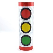 透明の筒に筒を被せ、上から緑、黄、赤の順にボールを入れていきます。