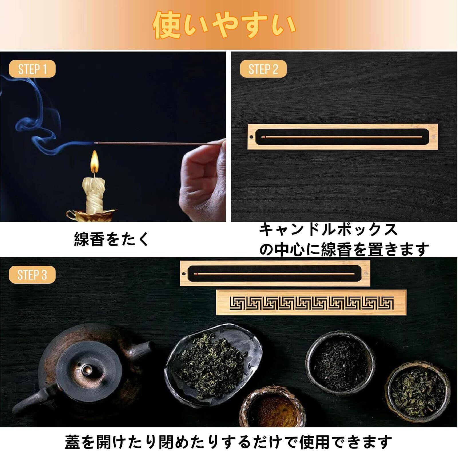 【燃えやすく清潔】線香ケースはすべての香灰を吸い込むことができ、乱れず、清潔にしやすい。カバー付きで、窓やファンを開けても灰が飛ばない。内蔵の防火綿マットは、意外な接触による火傷や消火を防ぐこともできます。