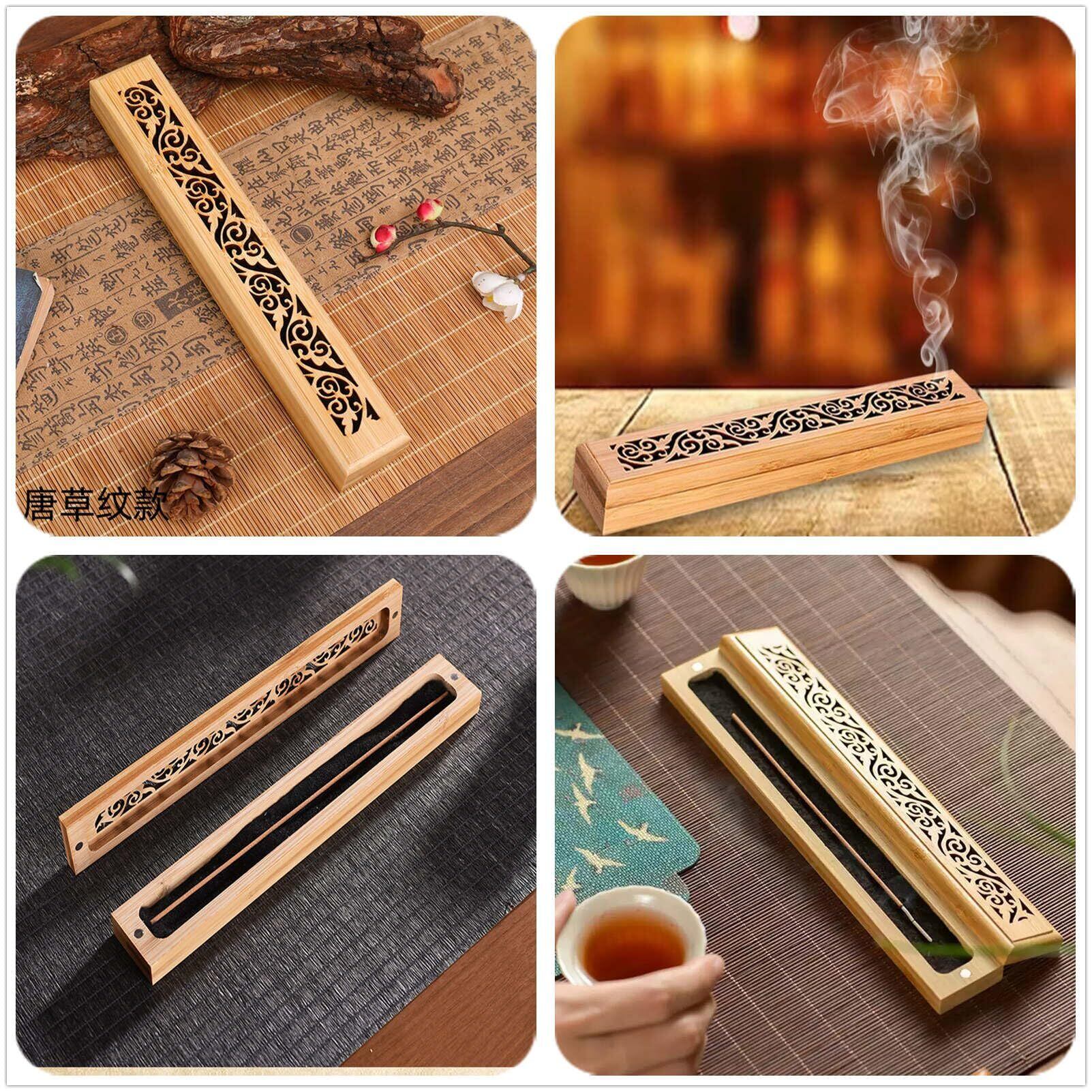 【数量限定】SensaBliss お香立て 横置き 香皿 木製香炉 茶道具 おしゃれ 透かし彫り 竹香炉 蓋付き線香立て 不燃綿 灰がこぼれない お香置き 携帯仏壇 瞑想 瞑坐 寝かせる 癒やし 供養 仏壇用皿 喫茶店 書斎 インテリア (唐草です) | allstore3