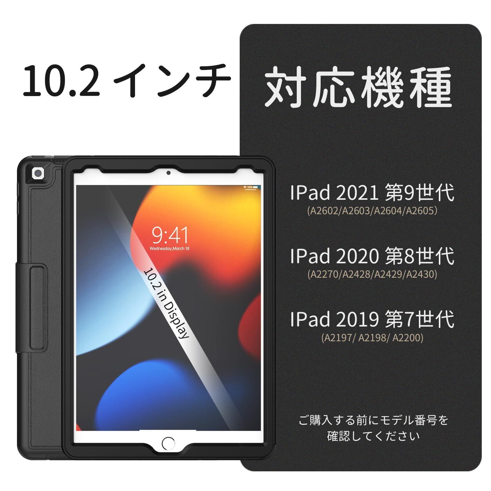 「対応機種」:iPad 第9世代/第8世代/第7世代 10.2インチ専用のデザインです。適用型番:A2602/A2603/A2604/A2605(2021)、A2270/A2428/A2429/A2430(2020)、A2197/ A2198/ A2200(2019)。他の機種との交換性がありませんので、ご購入になる前に、ぜひご機種の型番を確認してください。