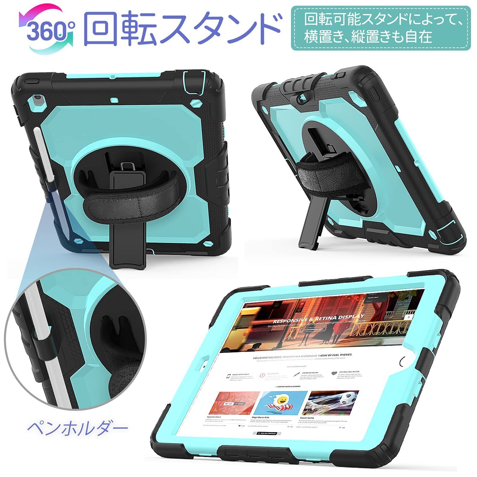 「ハンド&ショルダーストラップ」:バックカバーの回転盤にハンドストラップがあります。その中にお手を入れると、何の力もかからずおタブレットの重心をしっかり掴めます。また、最長49インチの可調整のショルダーストラップが配達されていて、それをケースに繋ぐと、ご設備の携帯はとても便利になります。