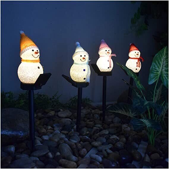 ソーラーガーデンライト 置物ライト 雪だるま 4点入り 埋め込み式 ガーデンライト クリスマス 庭飾り 屋外 防水 ソーラー 庭 パス 歩道 芝生 デコレーション (雪だるま*4個) Tanosimi