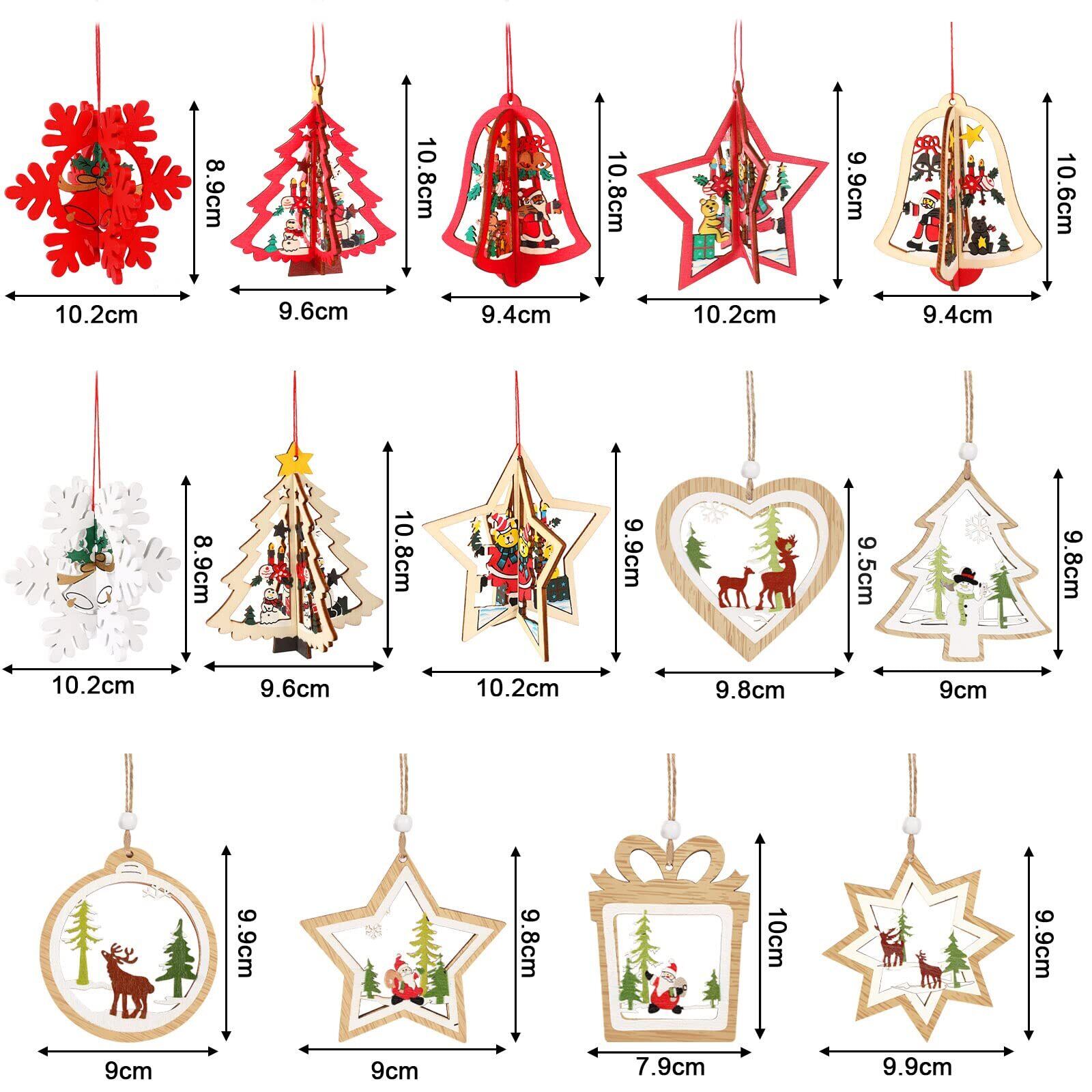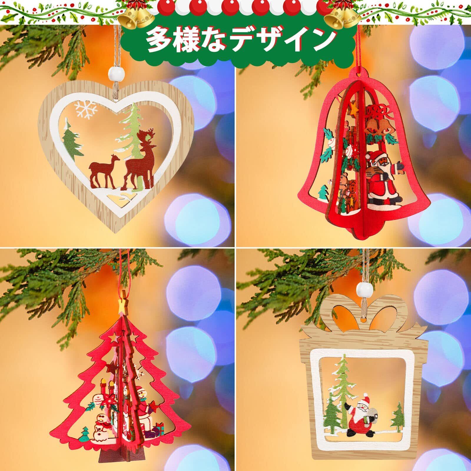 JANLOFO 14個セット クリスマスツリー オーナメント 木製 クリスマスツリー 飾り 北欧 デコレーション 立体 透かし彫り 星 雪 サンタ 雪だるま ハート ベル