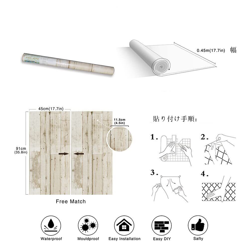 Homya 壁紙シール はがせる壁紙 45cmx10m 木目 防水 リメイクシート 接着剤不要 DIYシート 防カビ ウォールステッカー 地中海風 のり付き