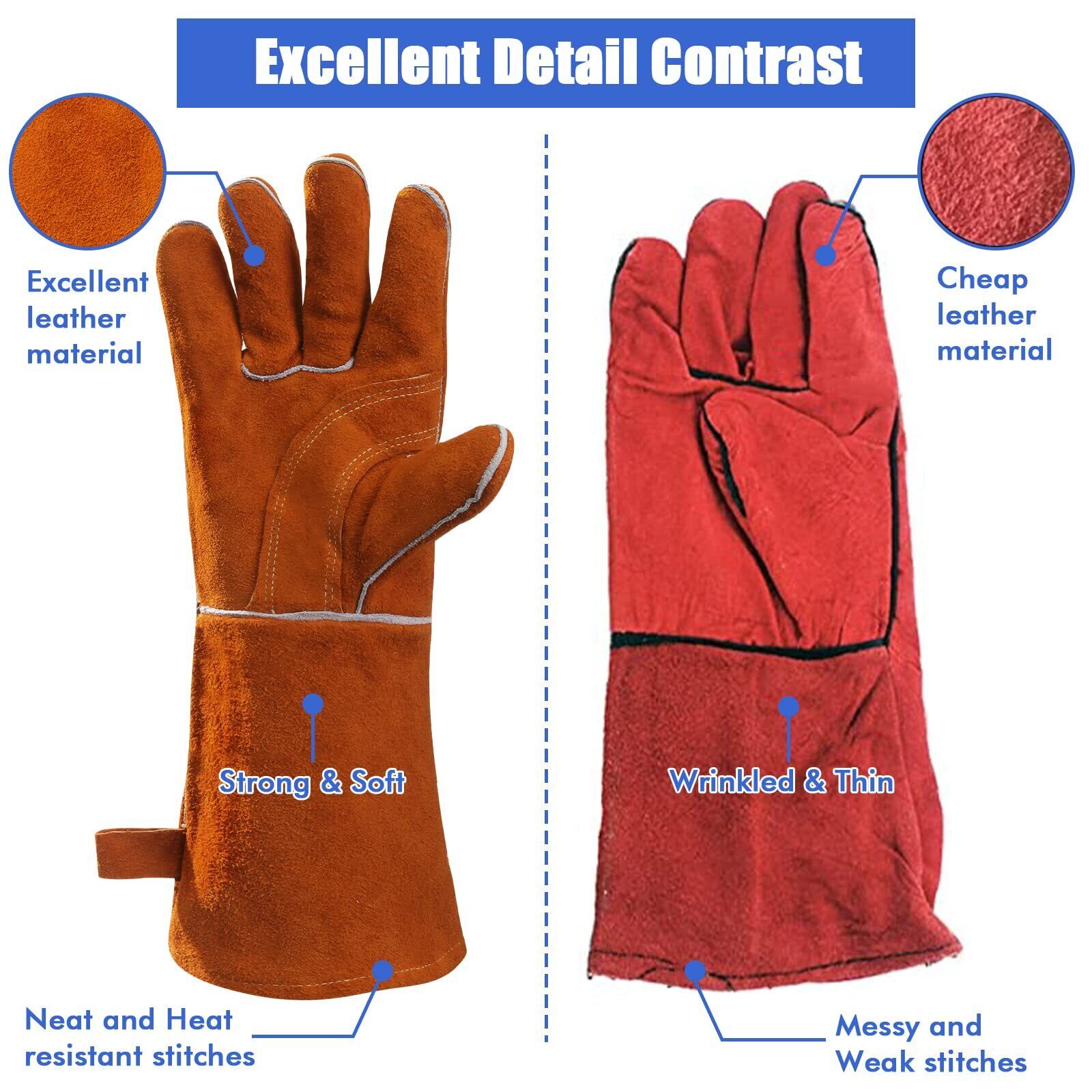 【上質な素材】耐久性に優れた革製の手袋、ご安心してご購入いただけます。袖口まで良質なレザーで仕上げ、通販の硬い耐熱グローブと異なり、もっと柔らかくて手触りが良いです。