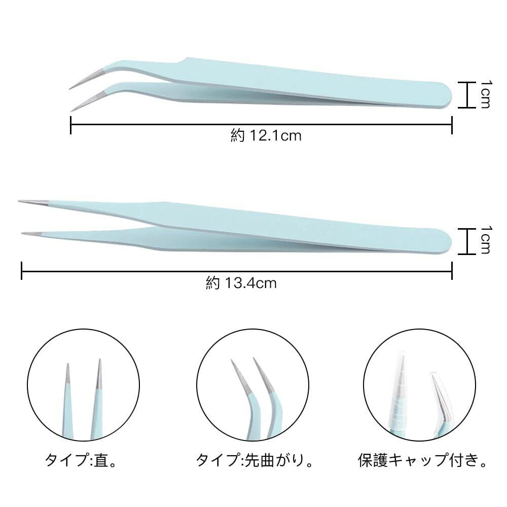 2種類セット:先曲がり、直。※ロットによりピンセットの先端があまり尖っていない場合がありますが、ご使用には影響ありません。予めご了承くださいませ。