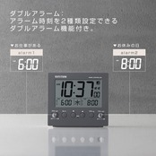 【用途で使い分けOK!便利なダブルアラーム】アラーム時刻を2種類設定できるダブルアラーム機能付き。平日・休日での使い分けや、ご家族で起床時間が異なる場合などに役立ちます。