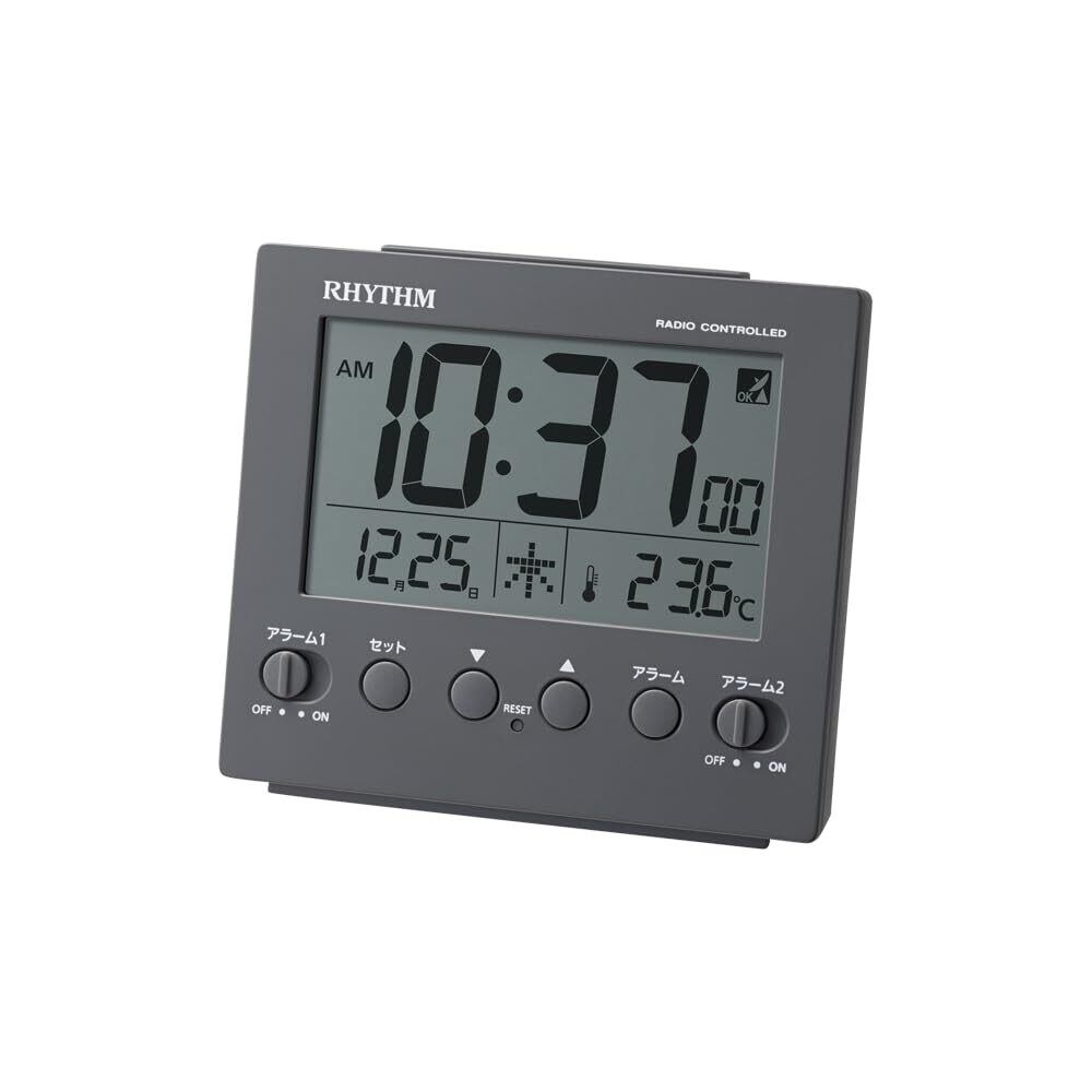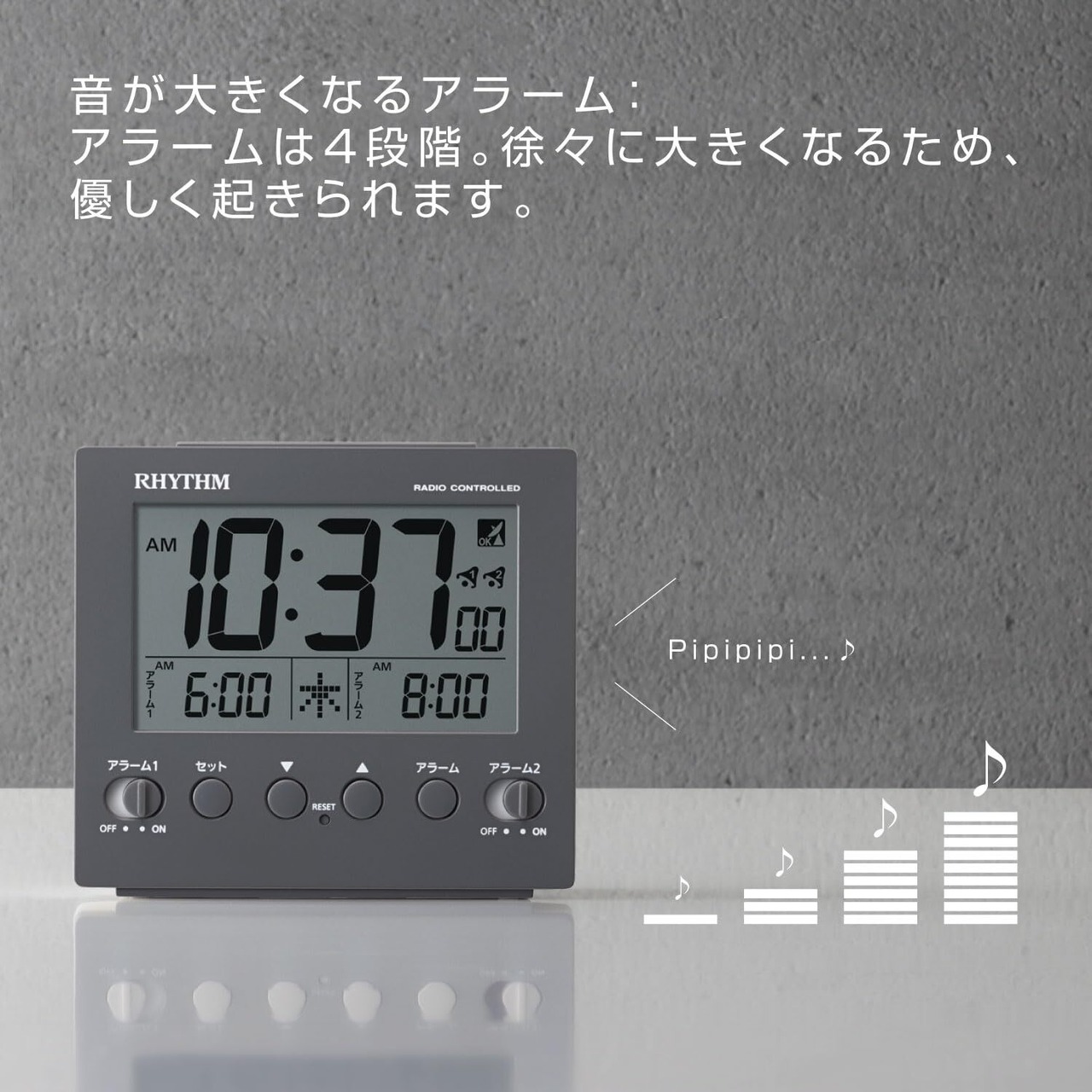 【2022最新】リズム(RHYTHM) 目覚まし時計 電波時計 デジタル 電子音 ダブル アラーム (スヌーズ 付) 温度計 ライト カレンダー ダークグレー 9.1×10×4.5cm フィットウェーブ D236 8RZ236SR82 | allstore3