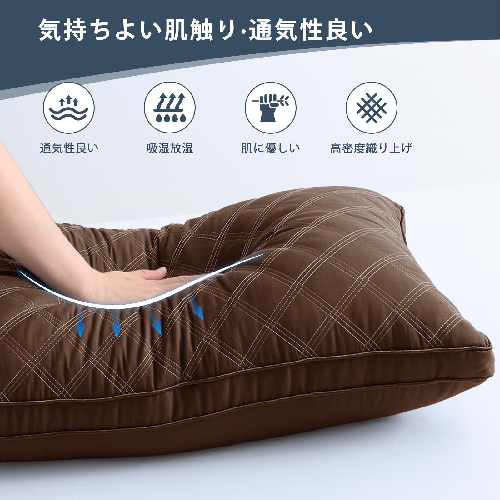 【高反発素材-復元力を持ち】厳選した高弾力の3Dポリエステル素材をボリュームたっぷりに詰め込み、ふっくらとした弾力を持つ同時にふんわり包み込まれる寝心地を実現します。適当な弾力で、頭部をしっかりサポートし、横向き寝・仰向け寝・うつ伏せ寝、お好きな寝姿でぐっすり眠れます。