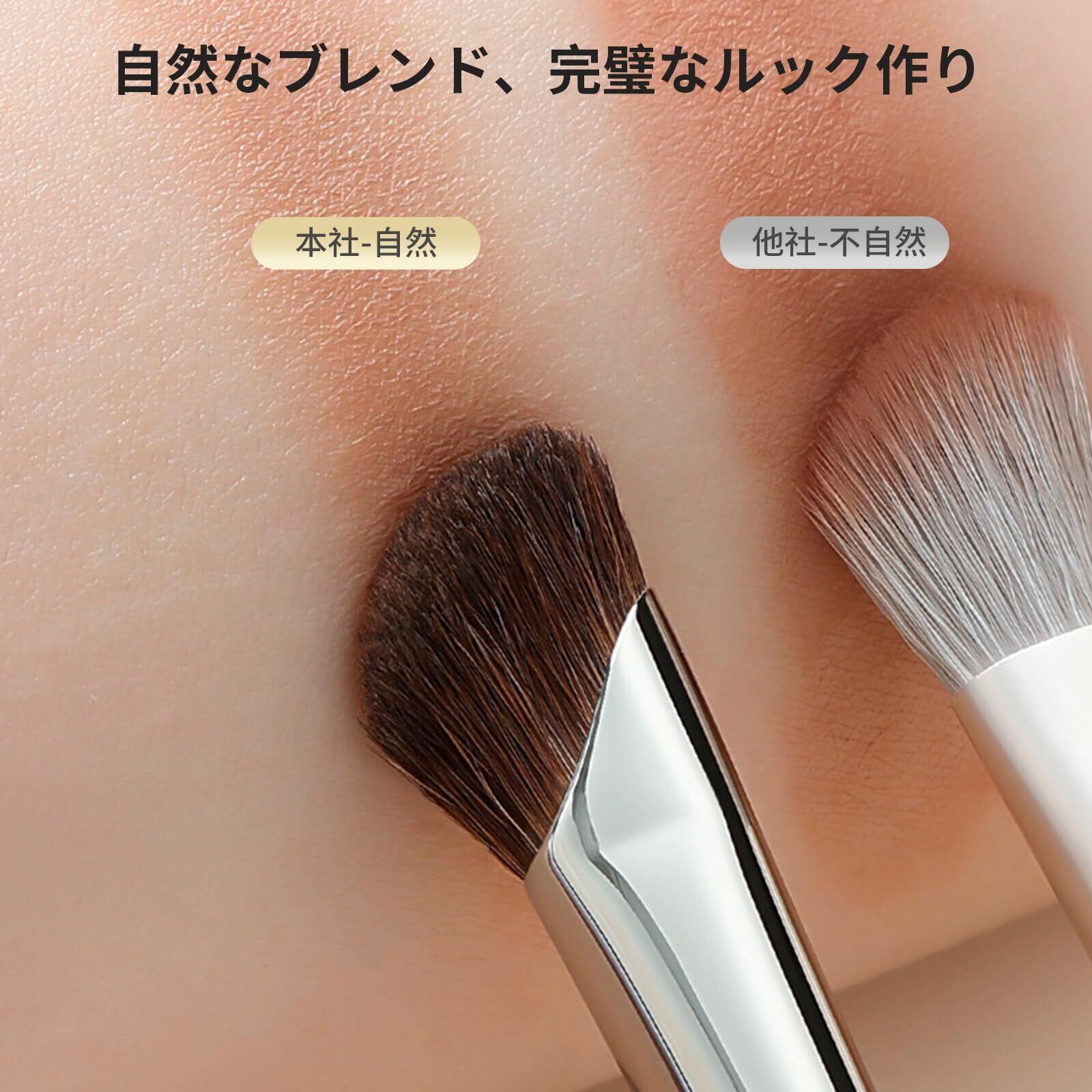 【粉含みよい】:毛は適度に長くて柔らかく、粉を含める能力は十分です。 こうすることでシャドウパウダーをしっかりキャッチし、均一に塗ることができます。