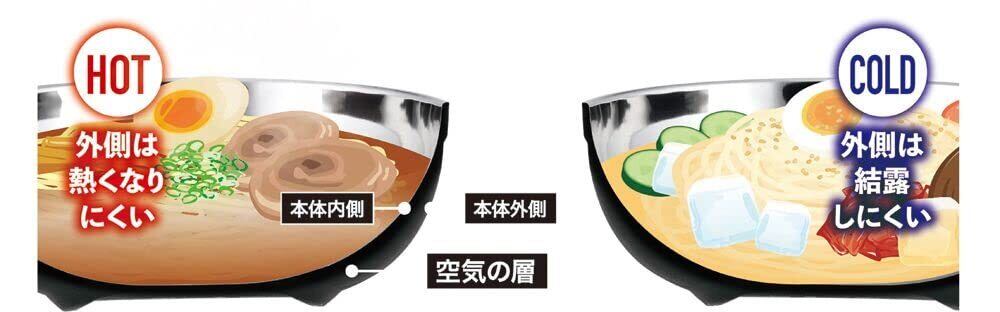 カクセー ステンレスどんぶり 1.6L 二重構造 結露しにくい 熱くなりにくい 韓国料理 冷麺 かき氷 アウトドア HOL-02