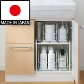 洗面台下の収納に。排水トラップを避けて棚がつくれます。