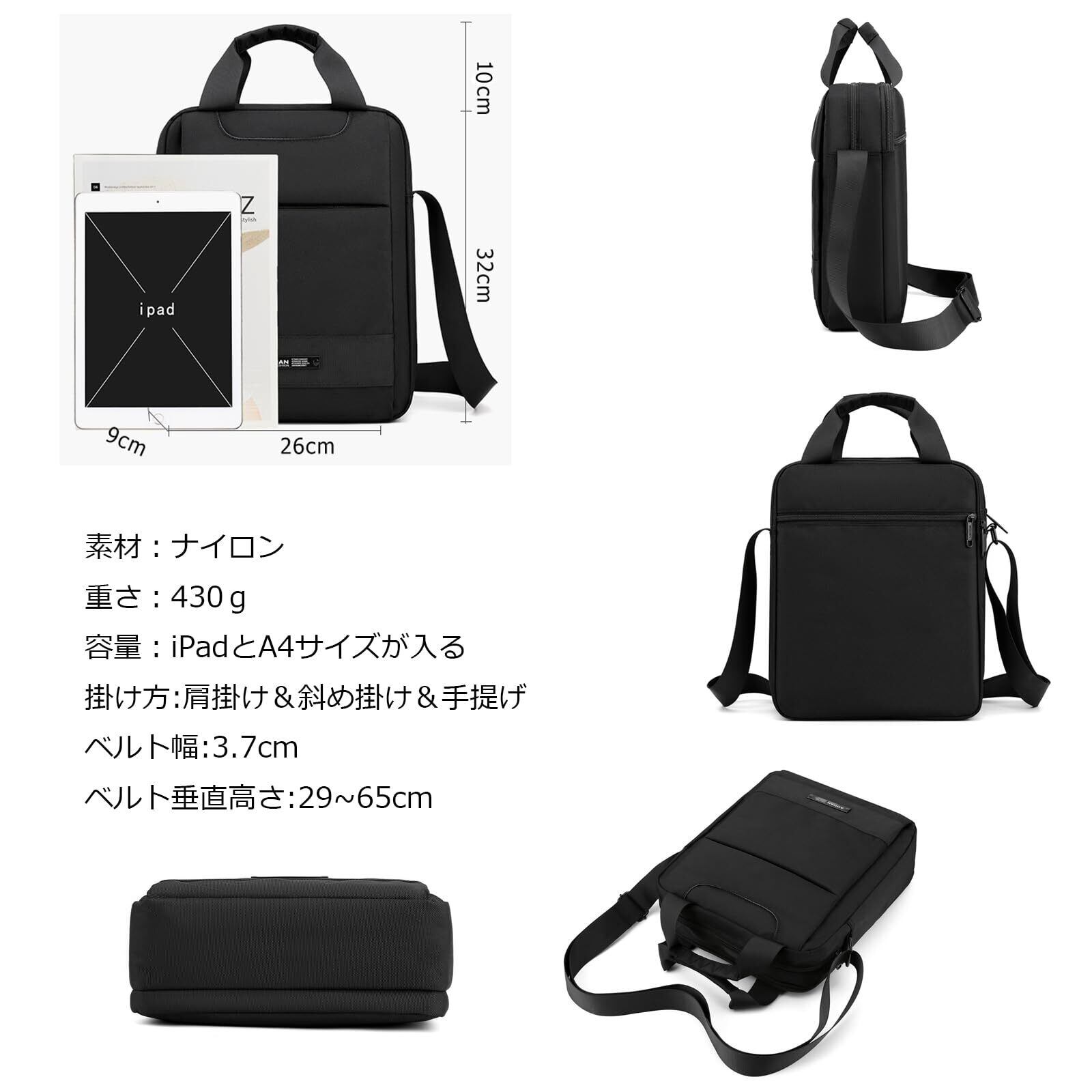 【たっぷり大容量&7ポケット】A4サイズの書類がギリギリに入りますが、A4サイズのフォルダーが入りません。9.7インチiPadが楽々入る容量です。ポケットも多く、整理しやすくて、手帳、スマートフォン、折り畳み傘、財布など必要な物が十分入るからこれ一つでお出かけ可能です。