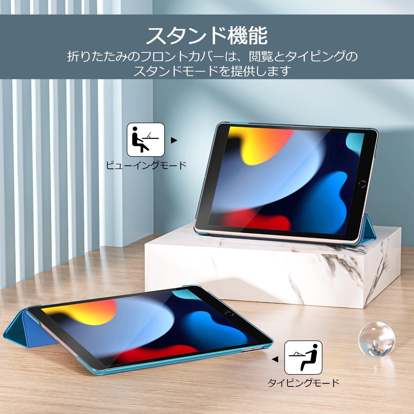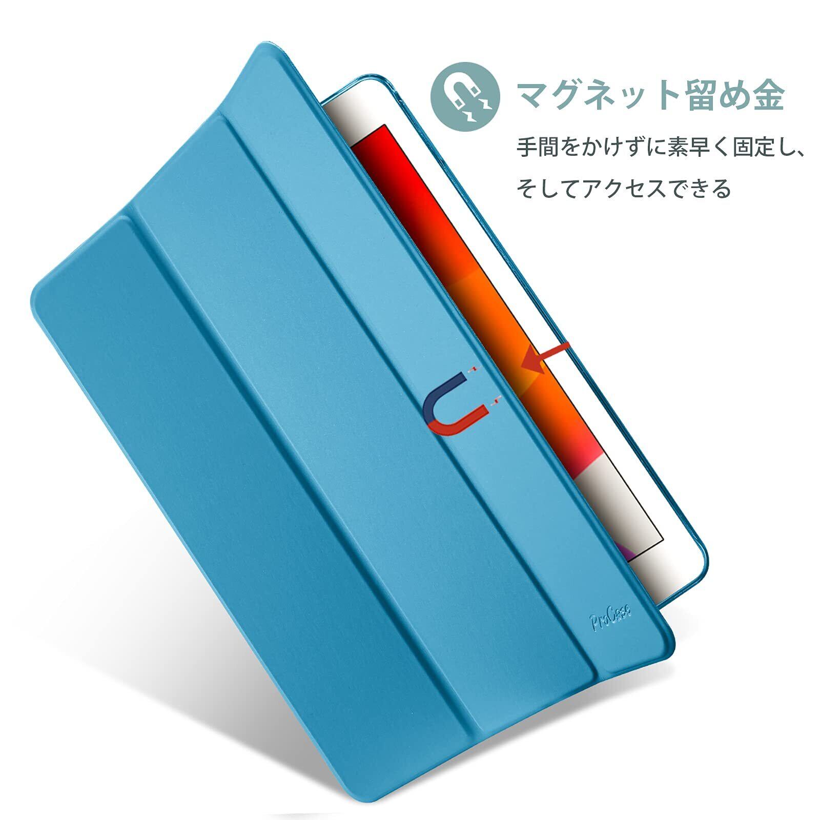 【2022最新】ProCase iPad 9/8/7 ケース (2021 2020 2019) 半透明バックカバー スマートカバー 軽量 三つ折りスタンド iPad 10.2" 対応 -ライブルー