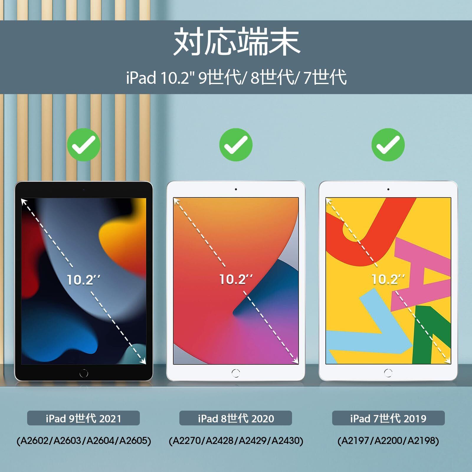 対応機種:iPad 10.2" 第9世代 2021 (A2604 A2605 A2603 A2602) / 第8世代 2020 (A2270 A2428 A2429 A2430)/ 第7世代 2019(A2197 A2198 A2200)のみ、その他の型式に適用されません。ご購入前、ご設備のモデル番号をご確認ください。